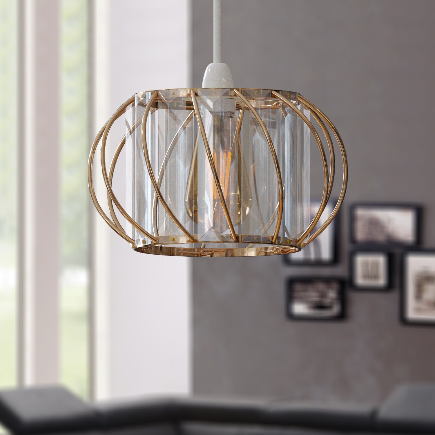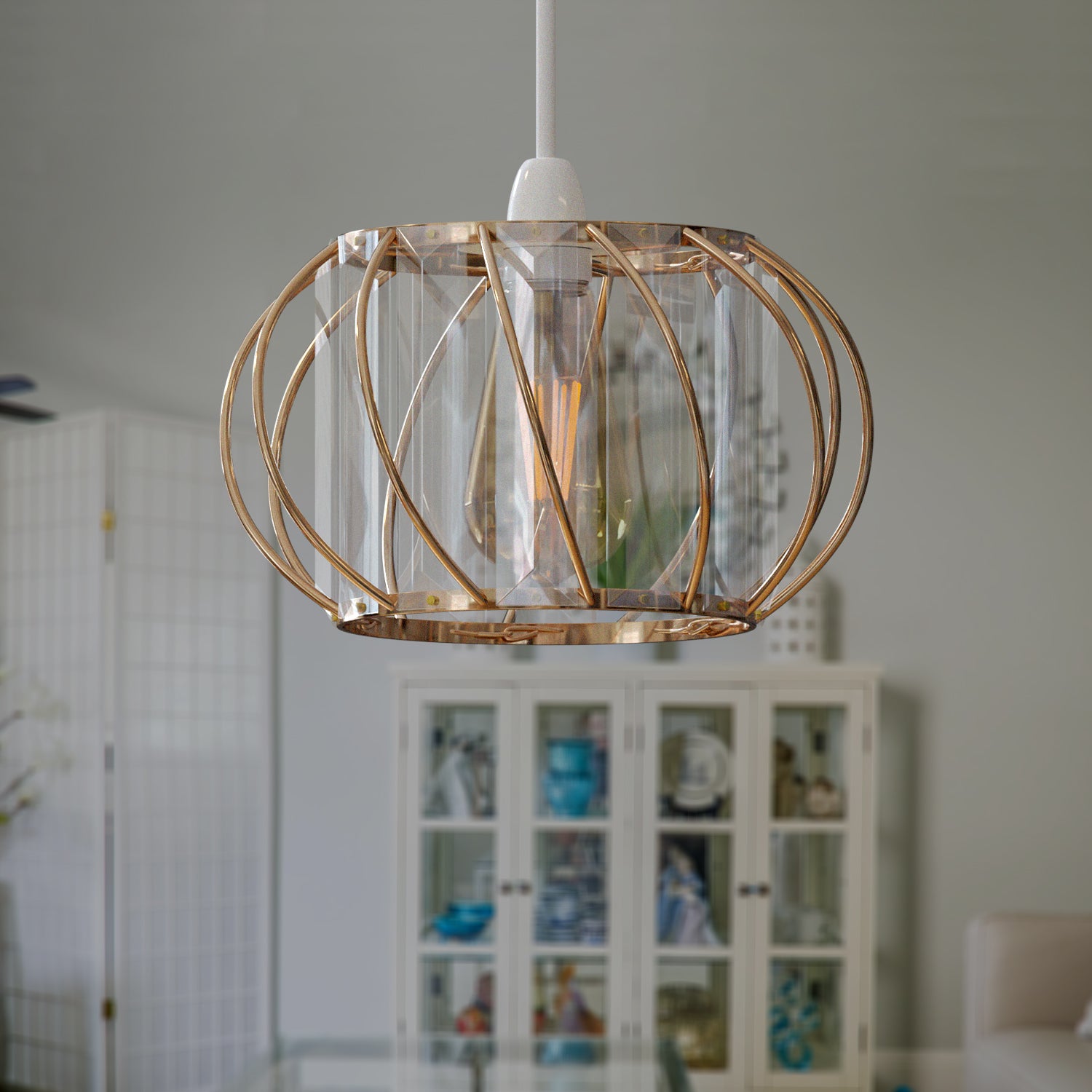 - De kooivormige armatuur heeft een glazen vorm met een decoratieve open framestructuur rondom het ontwerp dat zich richt op het doorlaten van licht en het reflecteren van licht op meerdere oppervlakken