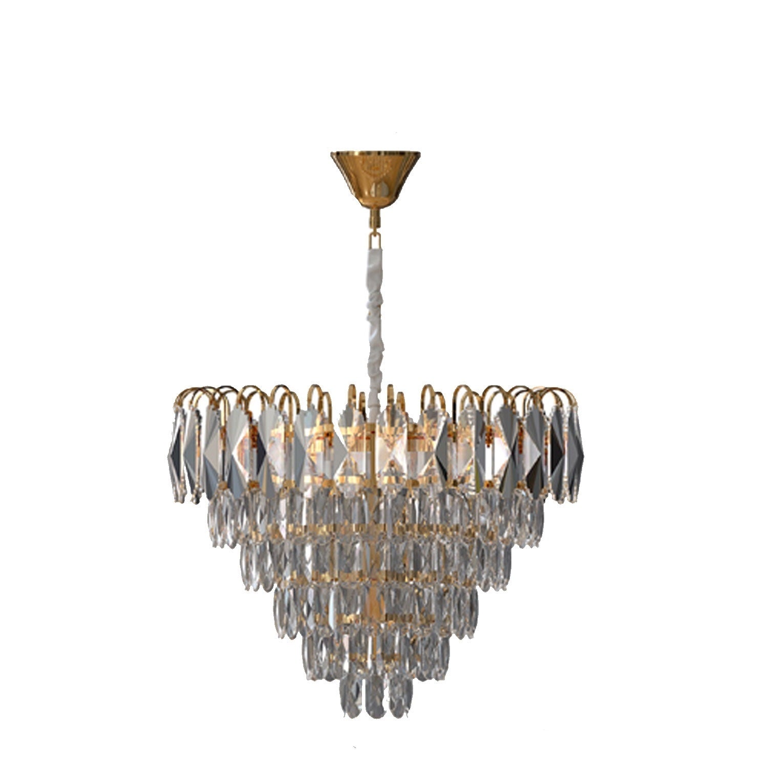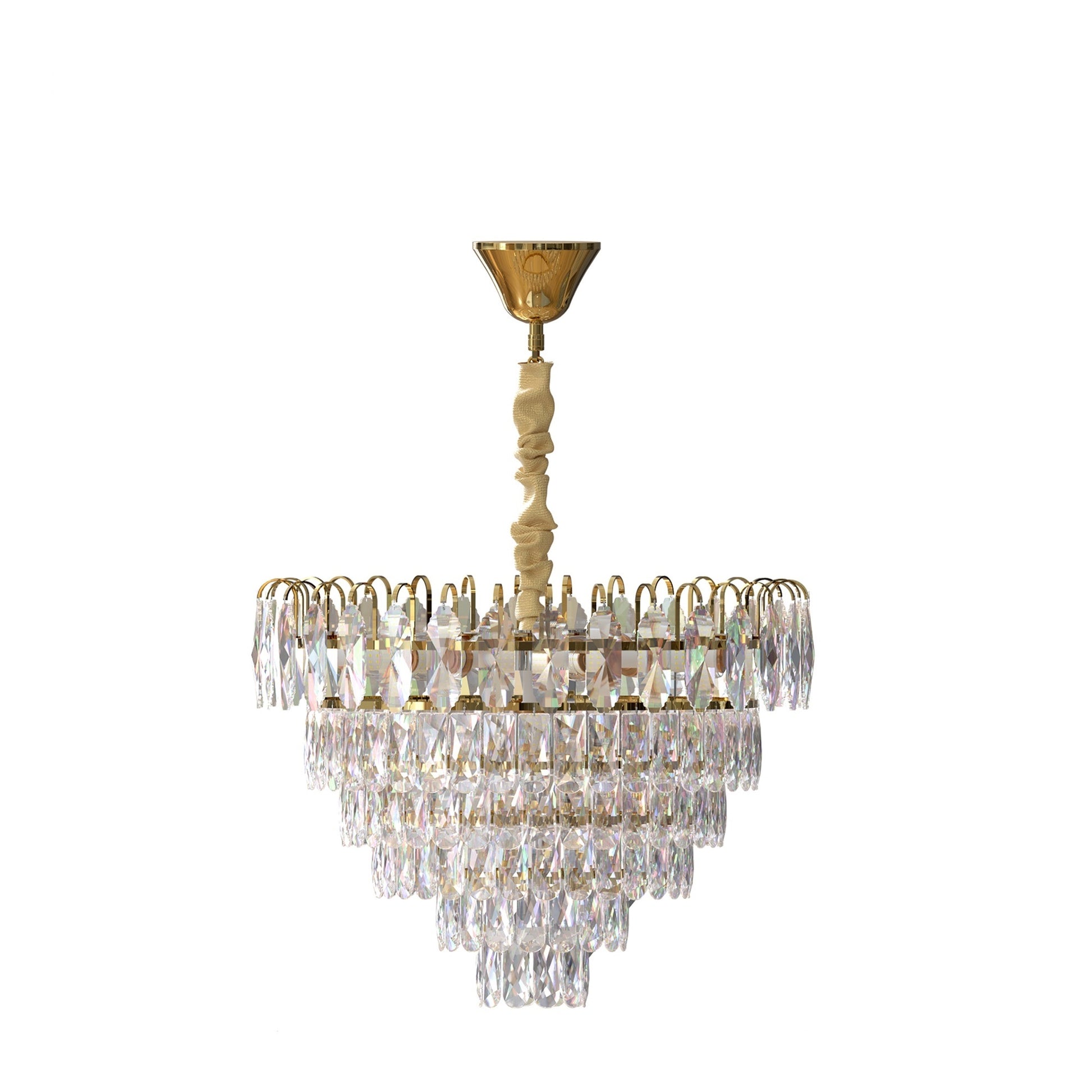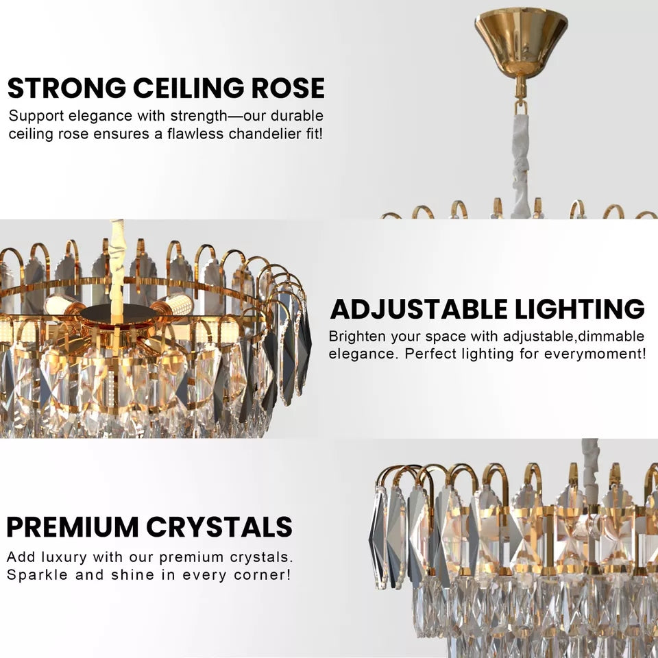 - Moderne kristallen kroonluchterverlichtingsarmatuur Verstelbare hanghoogte voor uw voorkeur en die hangende ketting ook bedekt met doekmateriaal.