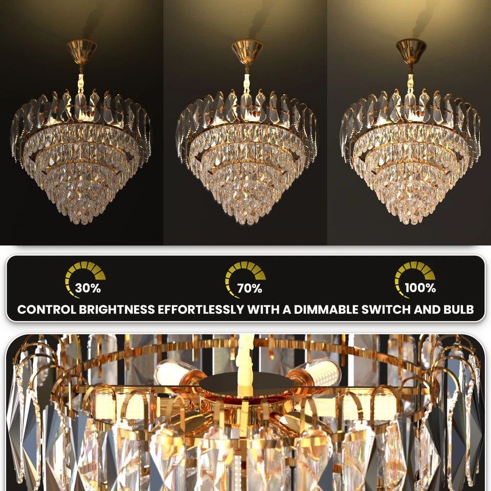 - Kroonluchters zijn dimbaar, zodat u de lichtintensiteit kunt aanpassen en verschillende sferen in de kamer kunt creëren.