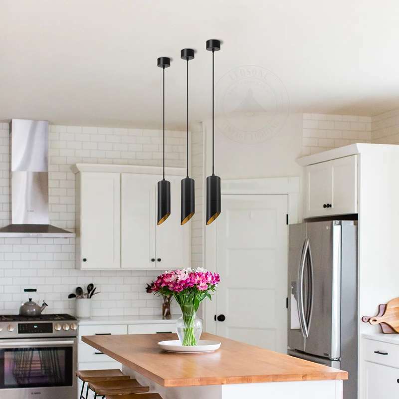- Met deze zwarte, gouden, lange buisvormige hanglamp voegt u op een geweldige manier een vleugje moderne verfijning toe aan elke kamer.