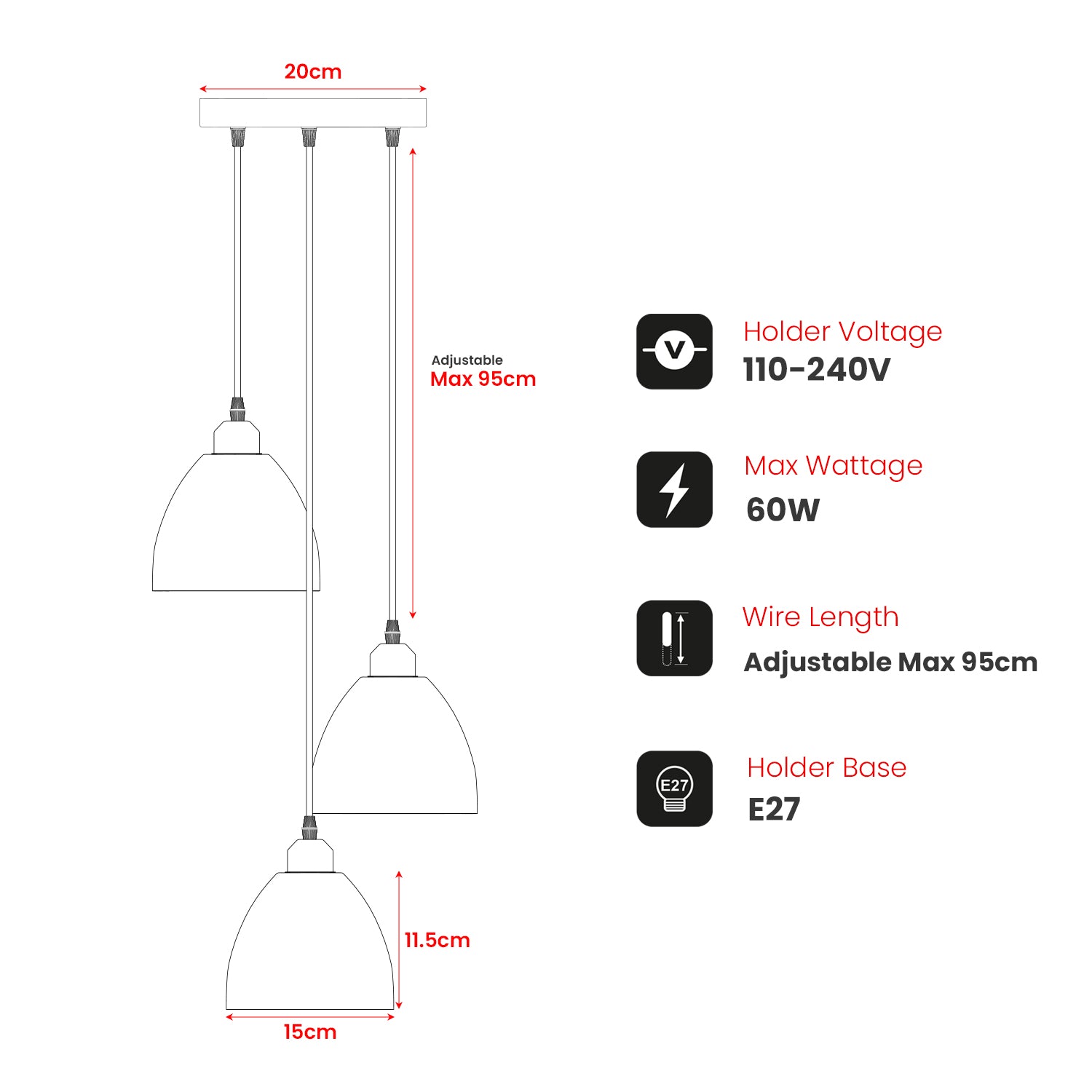 - Het kapontwerp voor hangende hanglampen met 3 koppen is de perfecte mix van elke kapstijl, is nooit uit de mode en past perfect.