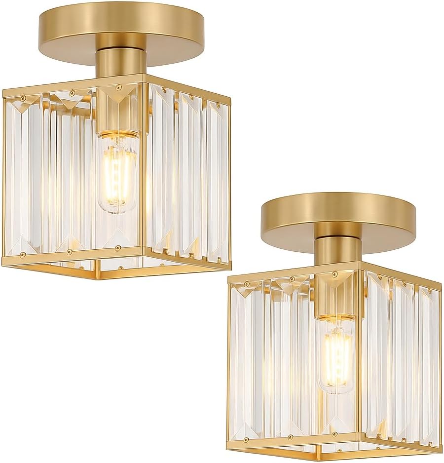 Set of 2 Modern Ceiling Lights Small Crystal Flush Mount ~6037