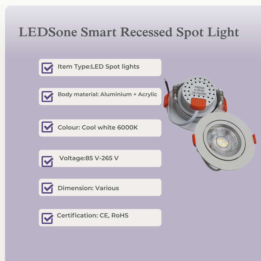 Met een kleurtemperatuur van 6000 K geven onze ledlampen een koelwit licht dat perfect is voor elke ruimte in huis. U kunt de inbouwspot op drie manieren gebruiken: Sfeerverlichting of algemene verlichting - Ideaal voor het verlichten van een kamer waar veel mensen komen, zoals uw woonkamer. Accentverlichting of spotverlichting - Uitstekend geschikt om een blikvanger te accentueren, zoals het kunstwerk boven het hoofdeinde in uw slaapkamer. Wandverlichting - Door de inbouwspots dicht bij de buitenmuur van uw huis te plaatsen, weerkaatst het licht de ruimte in en creëert u een mooi effect.