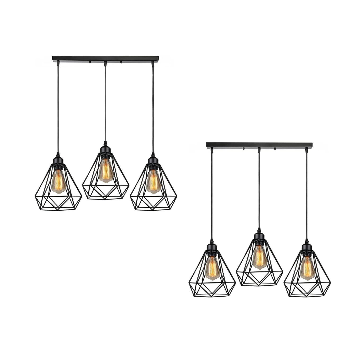 - Industrial style Black painted Three head Rectangular ceiling Rose pendant light with bulb guard wire cage.