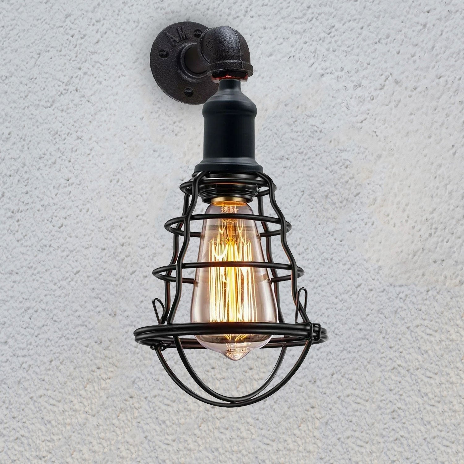 - 1 x Retro industriële wandlamp met kooi (lamp is optioneel)