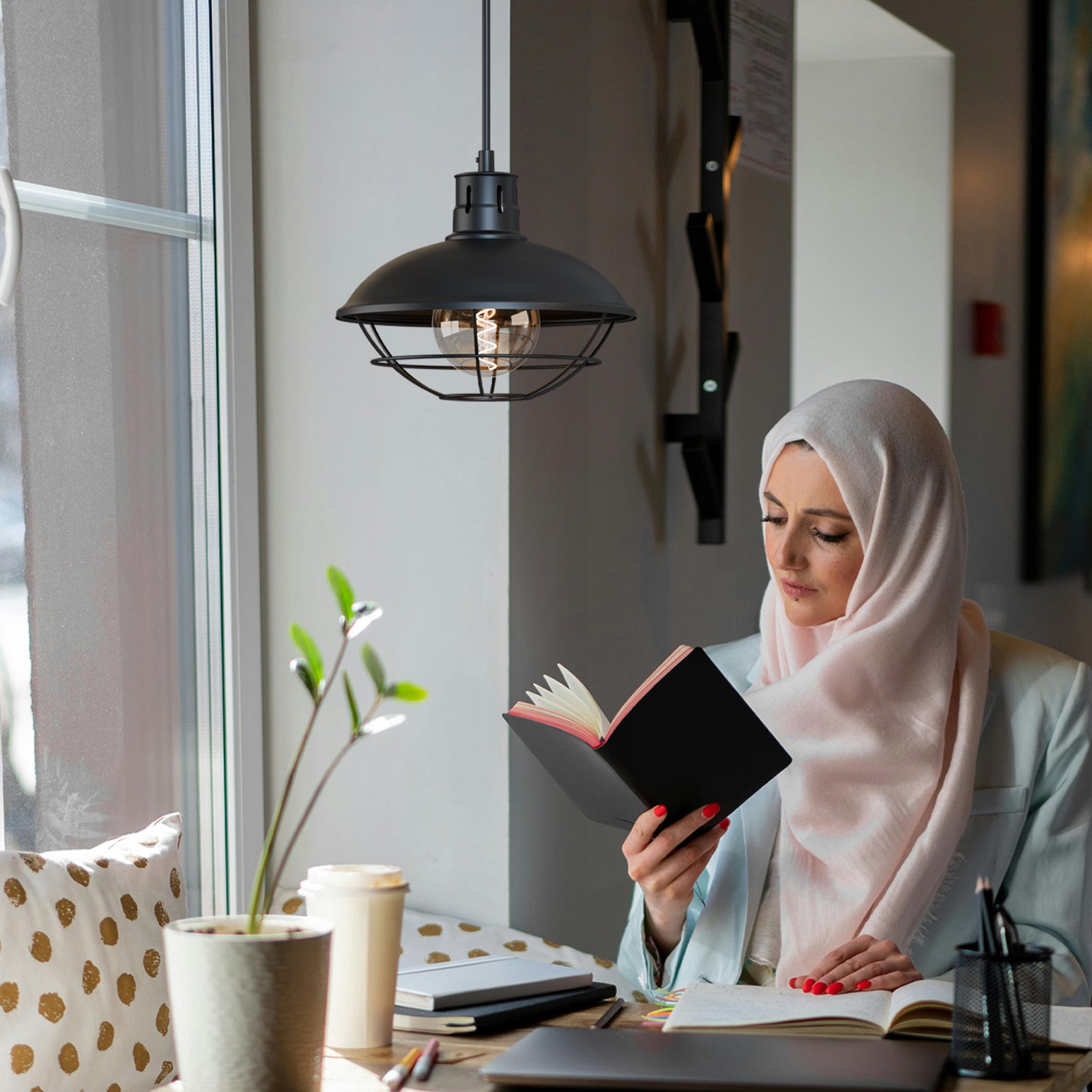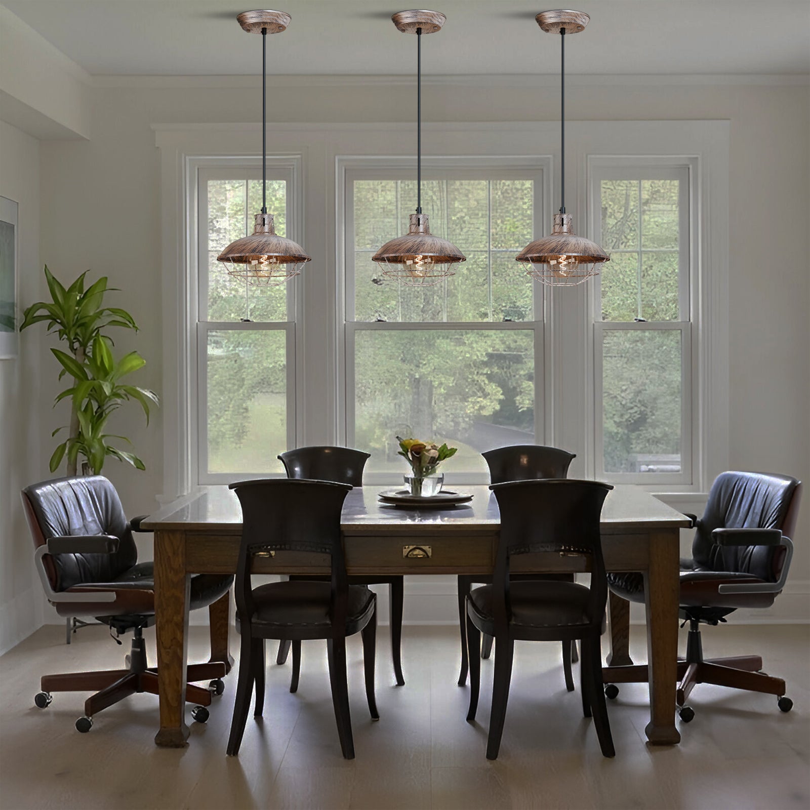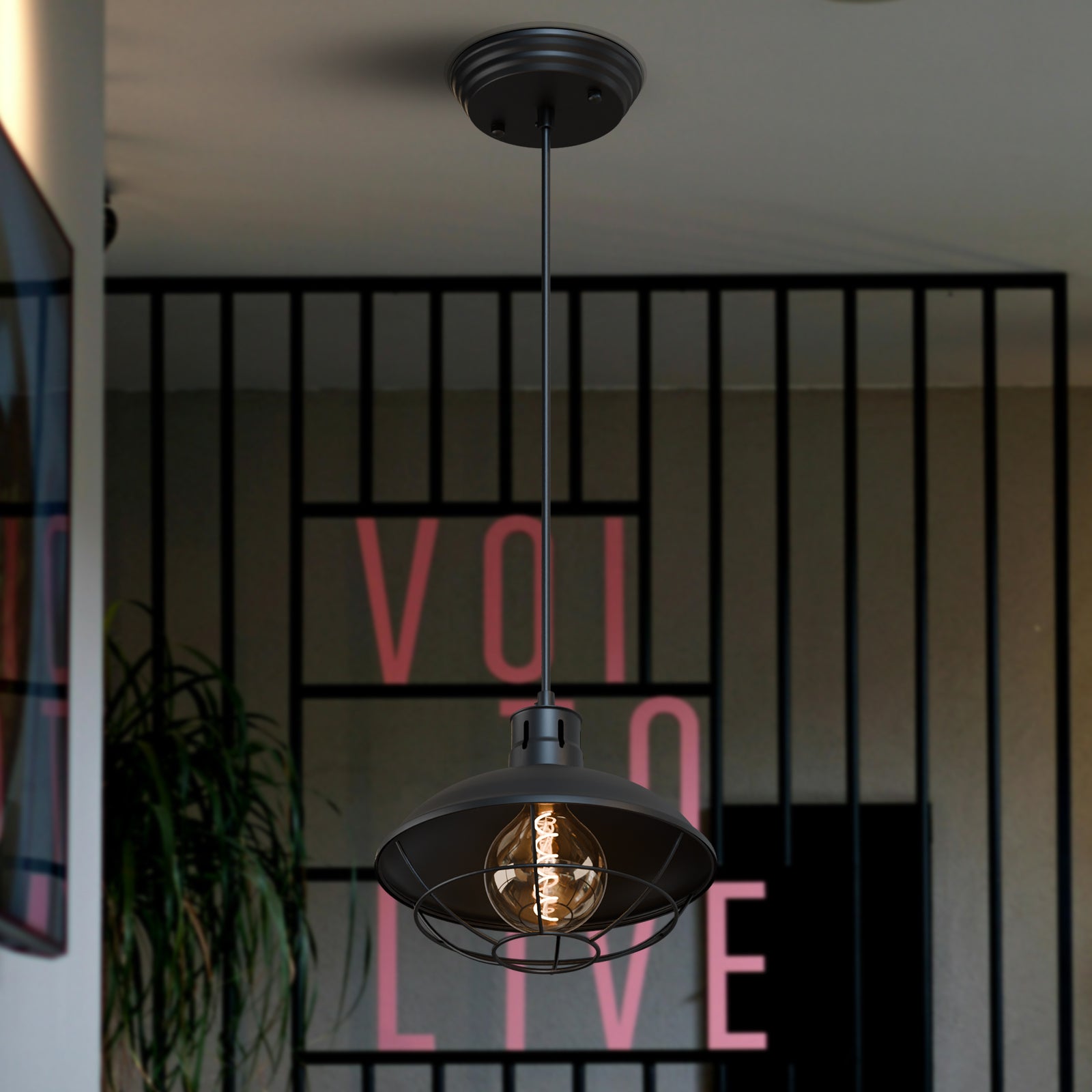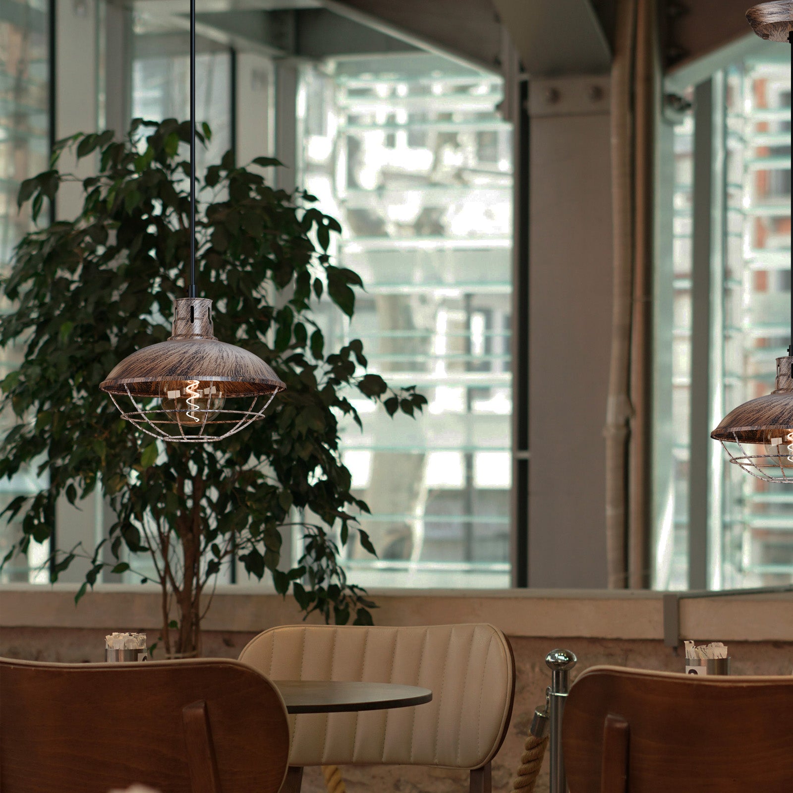 - De hanglamp heeft een metalen afwerking met een verweerde, ouderwetse draadkooi rond de lamp die zowel bescherming als veiligheid biedt.