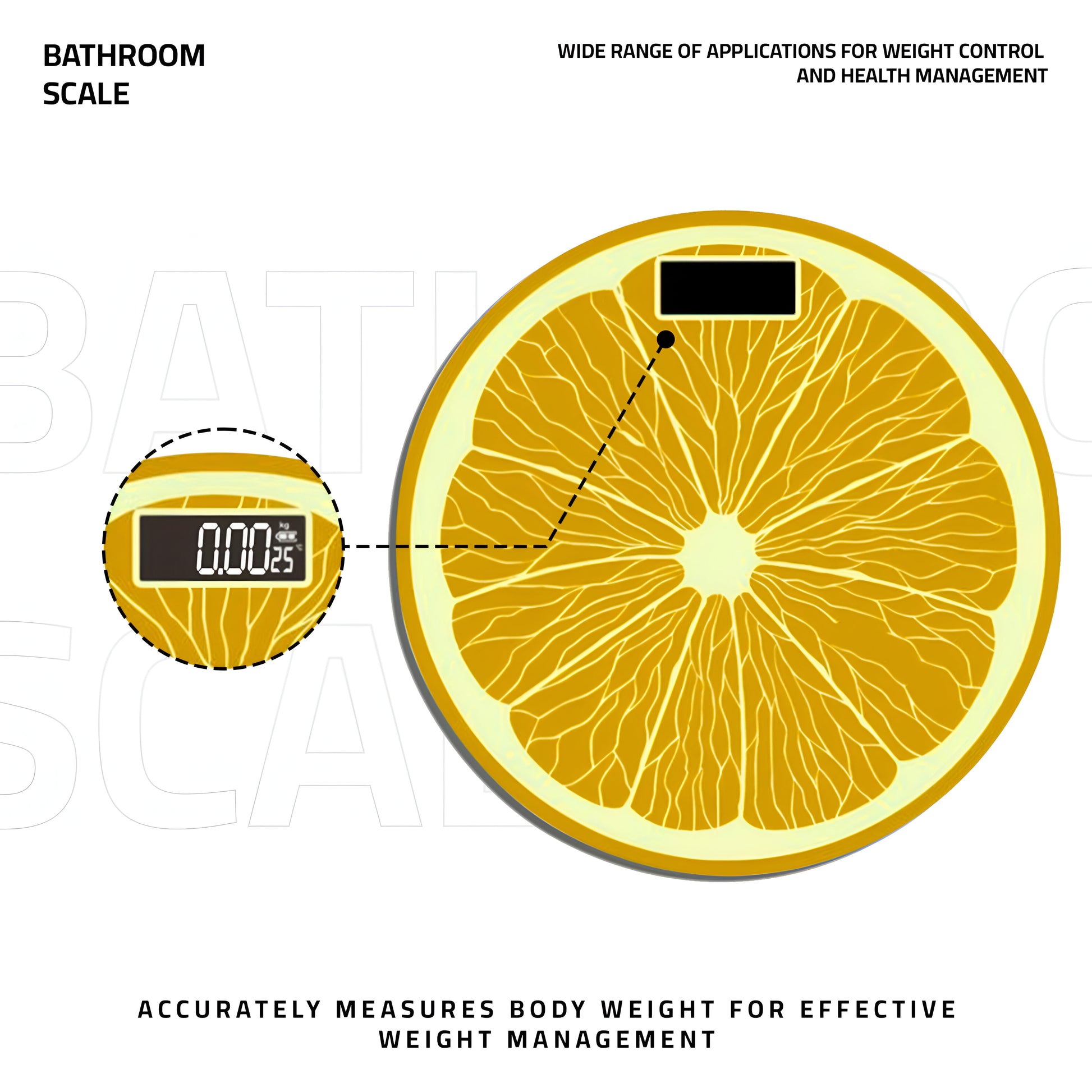 - De sinaasappel- en citroenweegschaal geeft het lichaamsgewicht op een prachtige manier weer, zelfs bij helder daglicht of in donkere kamers. Een interessant detail is de weegschaal.