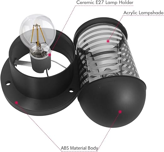 - Materiaal behuizing: keramische E27-lamphouder, lampenkap van acryl, behuizing van ASB-materiaal