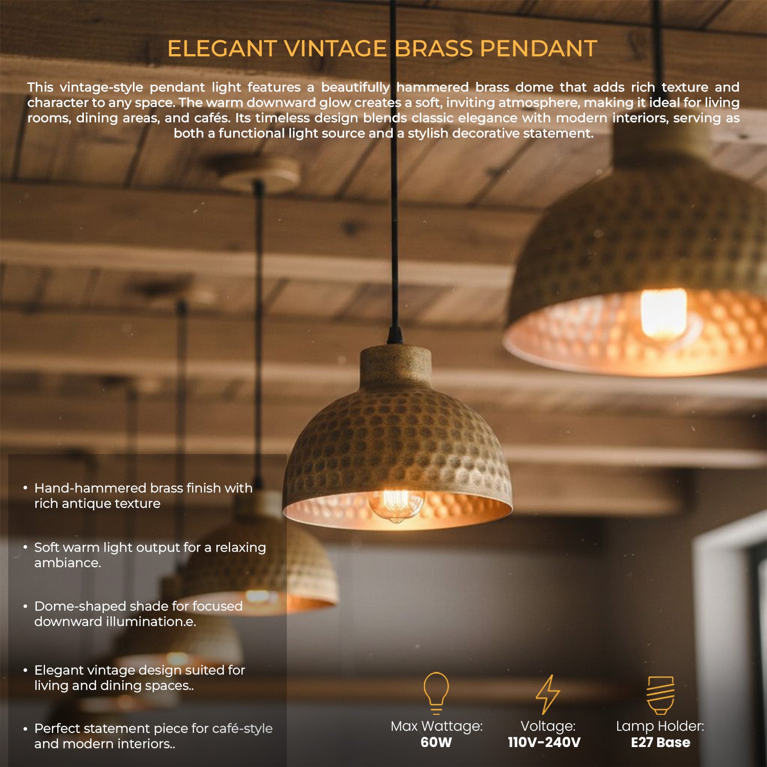 Transform your interior with the timeless appeal of the LEDSone Industrial Metal Pendant Light. Designed to blend rugged industrial charm with modern sophistication, this stunning copper pendant light features a unique hammered metal shade that creates a warm, inviting ambient glow. Whether you are searching for the perfect kitchen island hanging lights, illuminating a dining room table, or upgrading a chic cafe bar, this versatile ceiling light fixture is the perfect fusion of style and functionality.