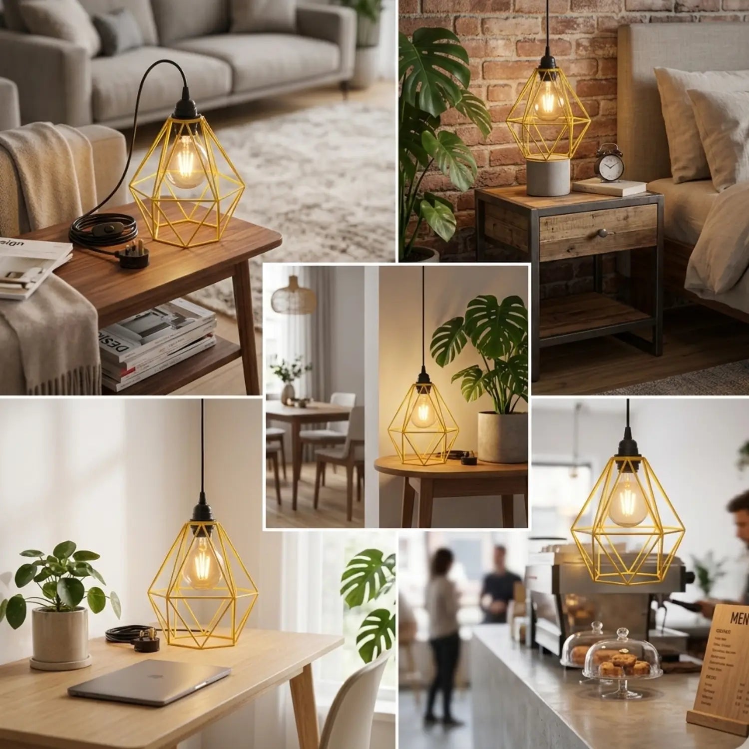 • De plug-in hanglamp wordt geleverd met een verstelbaar snoer en de benodigde ophangbeugel.