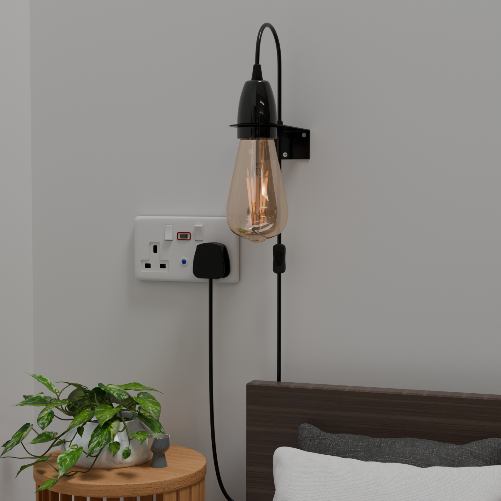 - De wandlamphouder is voorzien van een BS-standaard 3-pins stekker en een aan-uitschakelaar om het energieverbruik van de lamp te optimaliseren