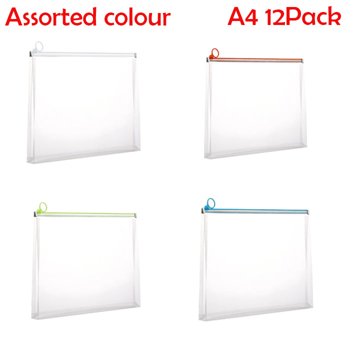 - 12 x doorzichtige plastic zakken met ritssluiting (Let op: dit is een assortiment van verschillende kleuren. We kiezen willekeurig een kleur, tenzij u ons een bericht stuurt om een specifieke kleur aan te vragen)