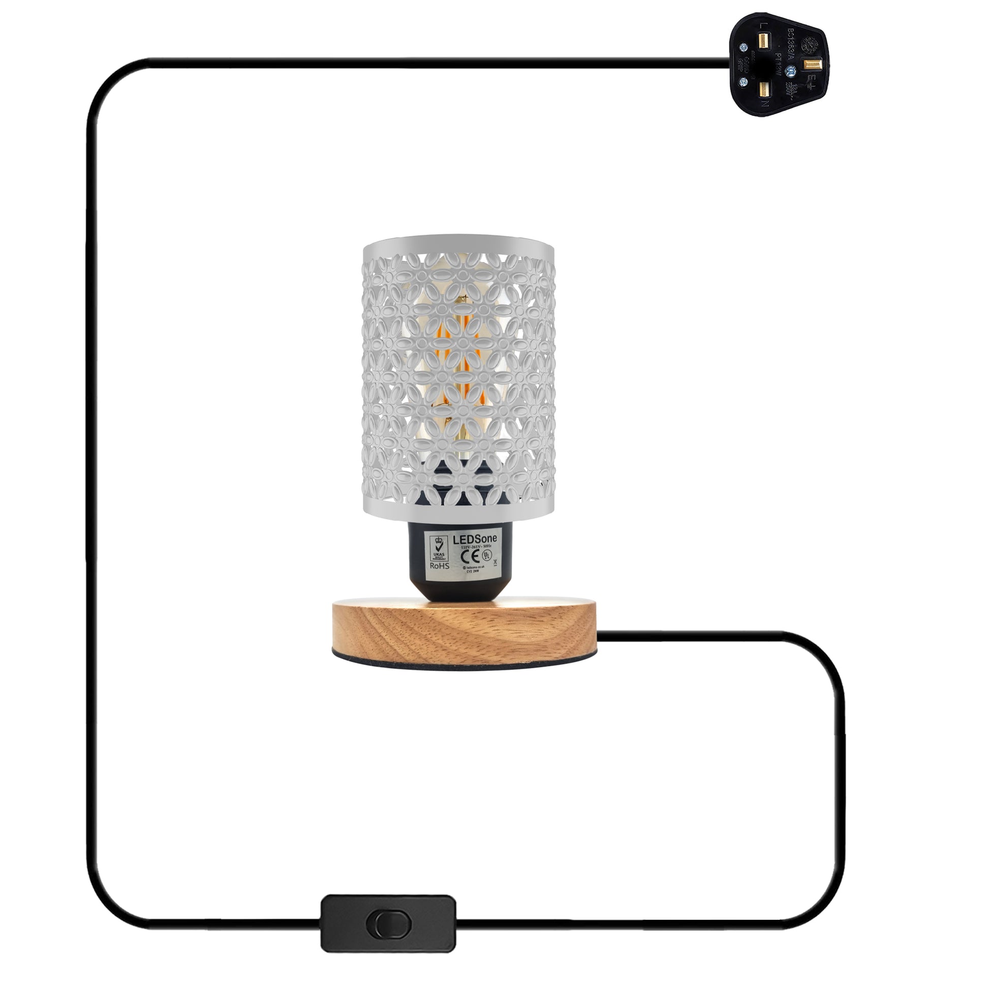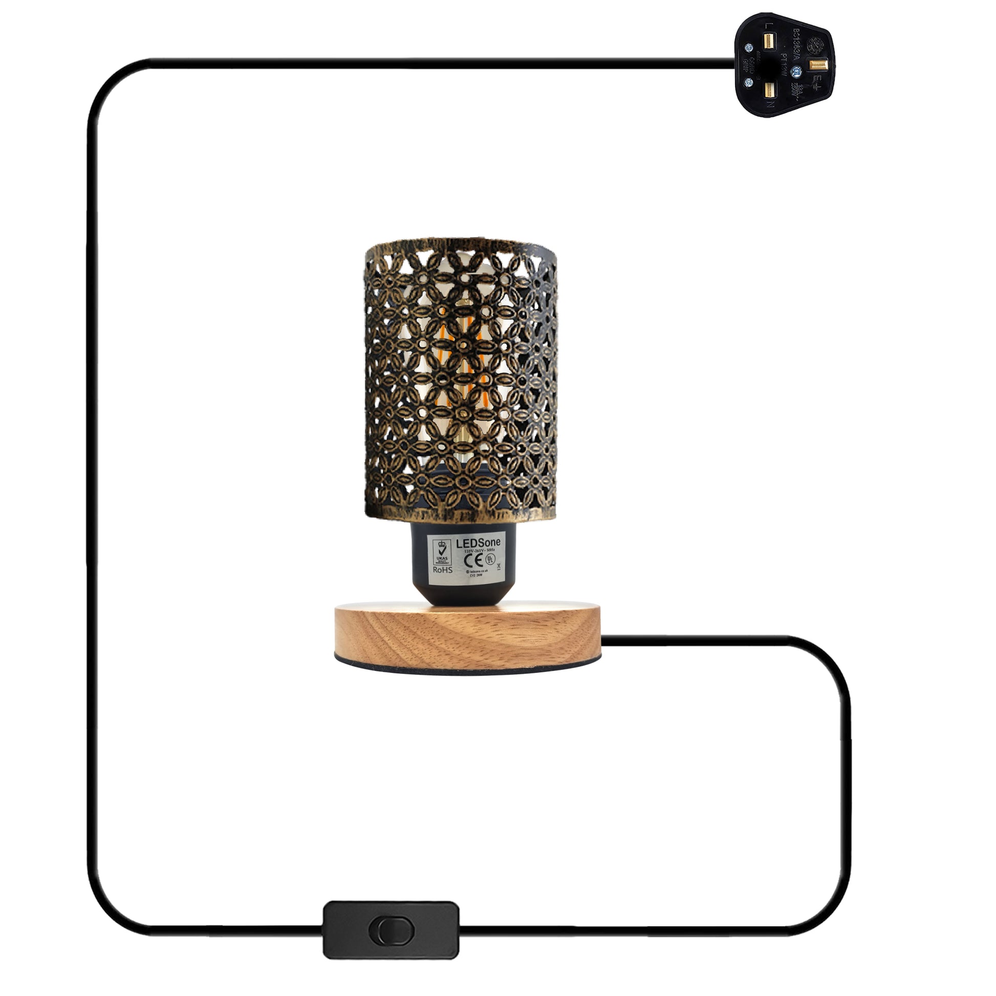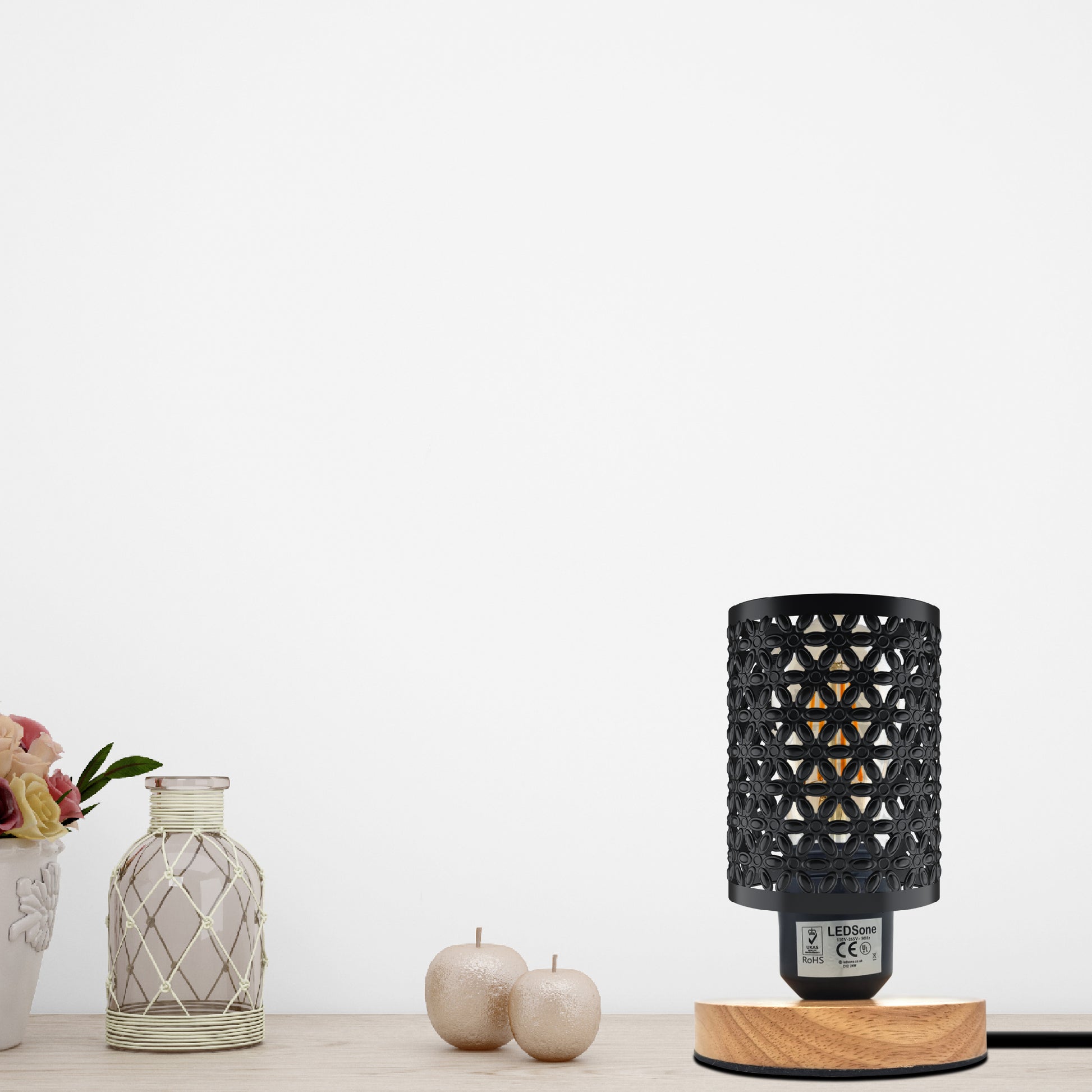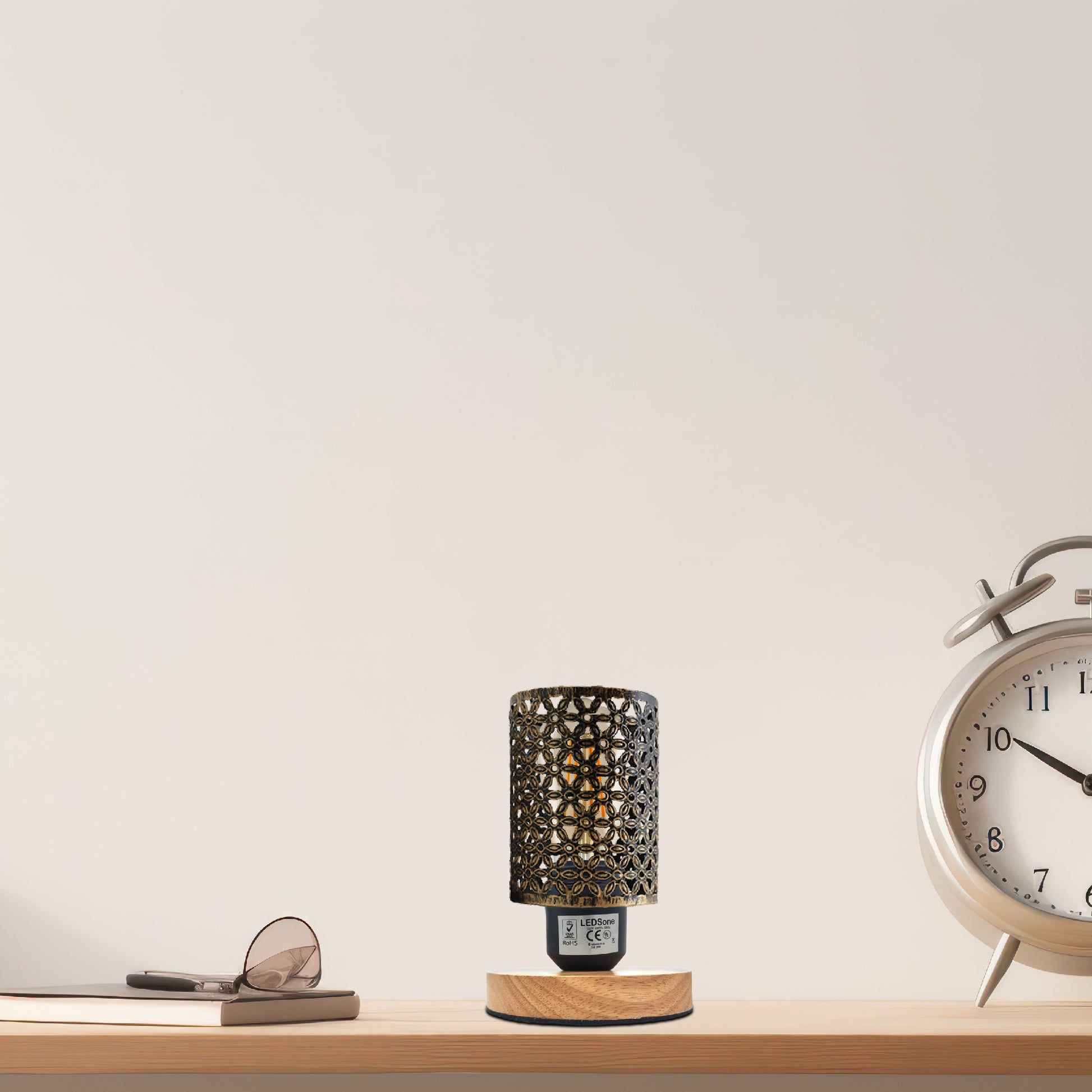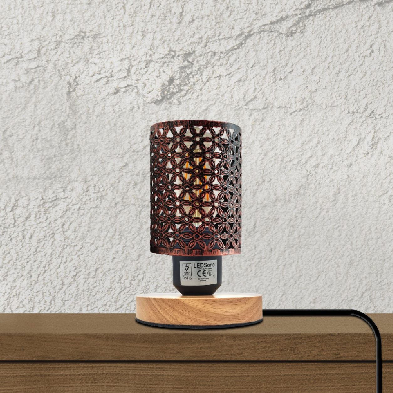 - De tafellamp is ontworpen met een tonvormige kooi en een standaard van natuurlijk hout, waardoor de verlichtingsarmatuur extra schoonheid aan uw huis toevoegt en een perfecte interieurdecoratie is.