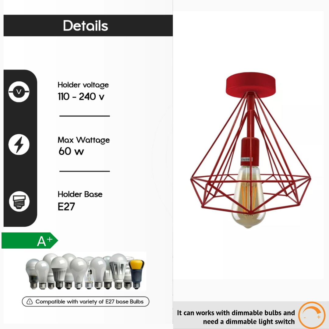 - Dankzij het open kooiontwerp aan de onderkant is de lamp eenvoudig te installeren.