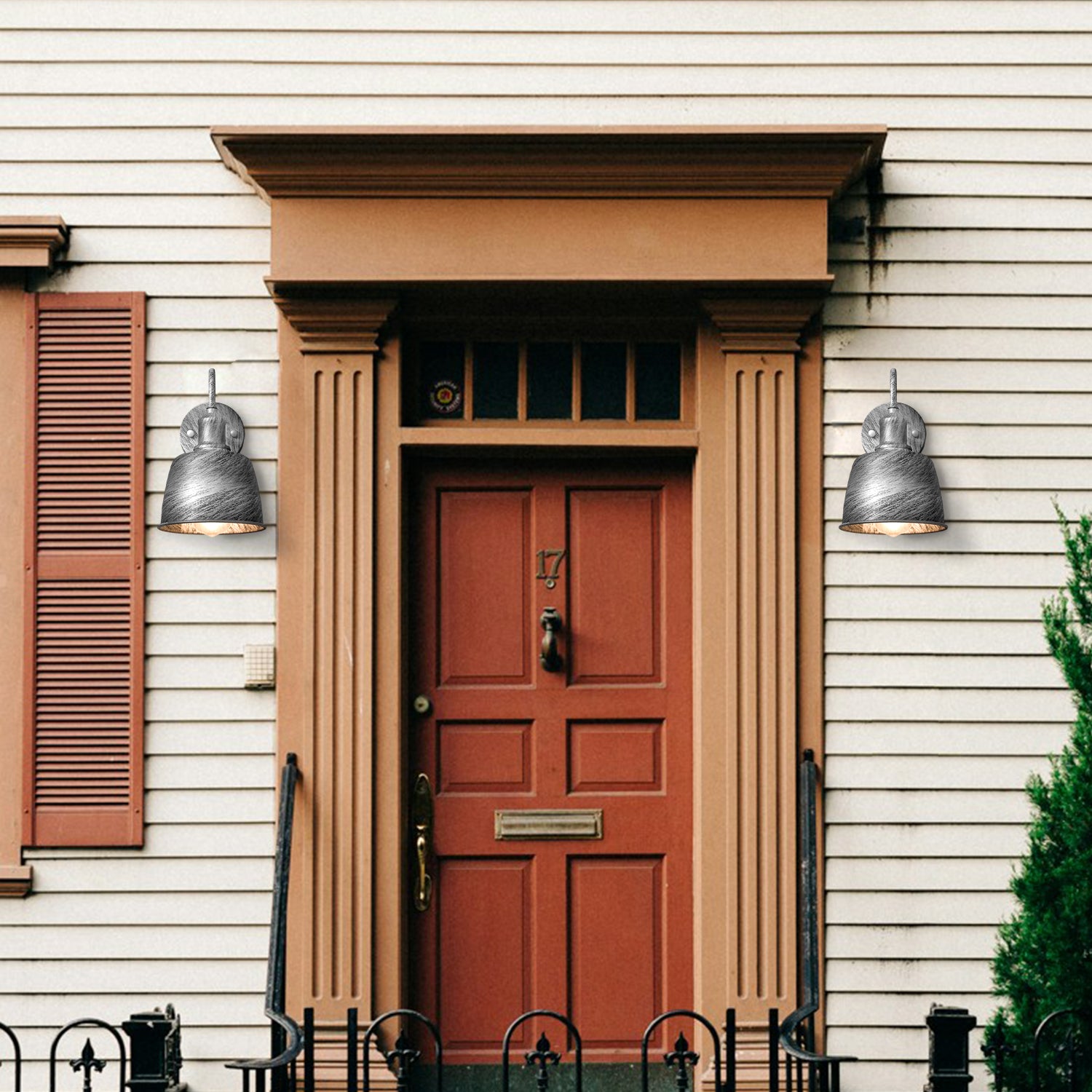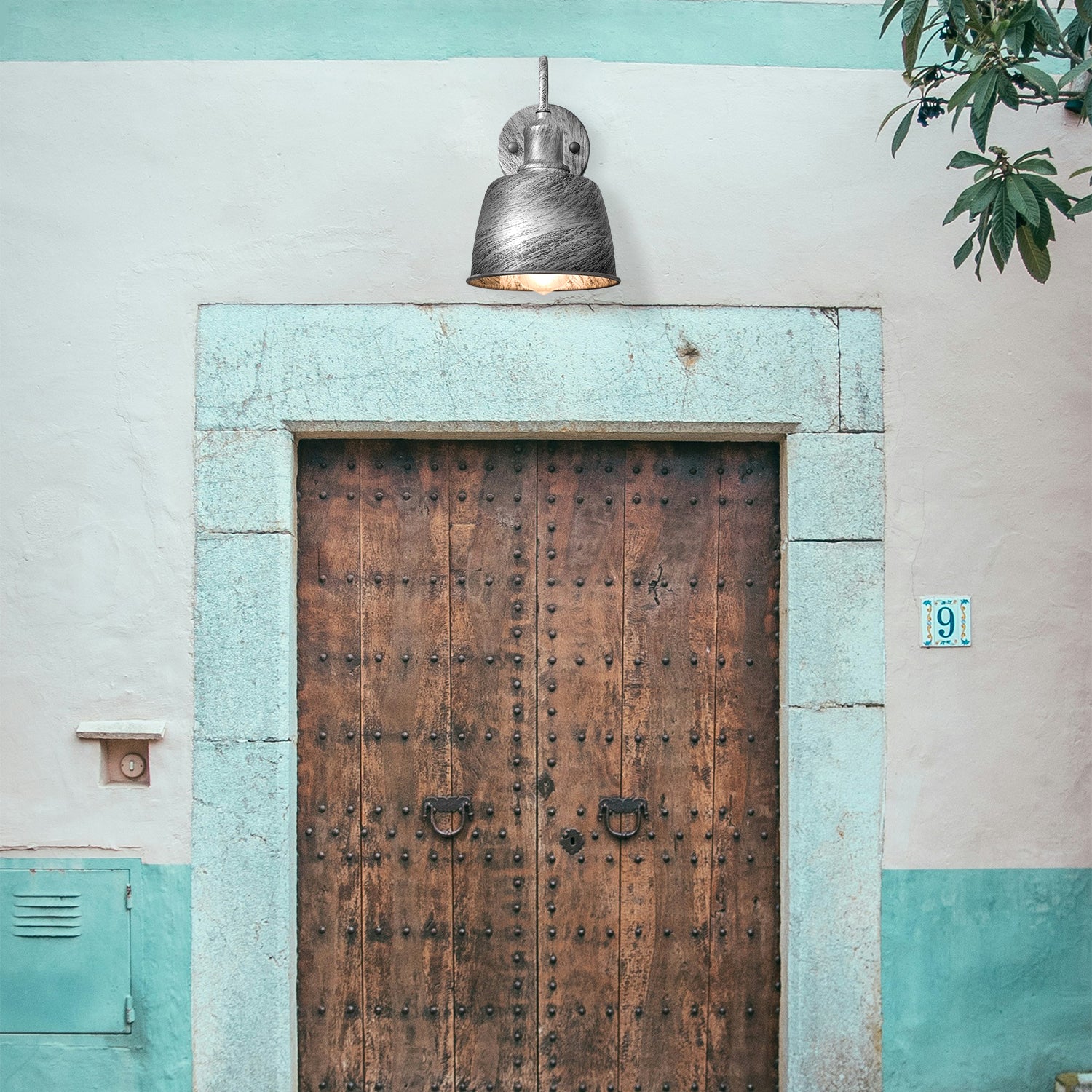 - De lamp is gemaakt van metaal en hangt aan de muur om het regenbestendige licht te verspreiden, wat de barre weersomstandigheden vermindert.