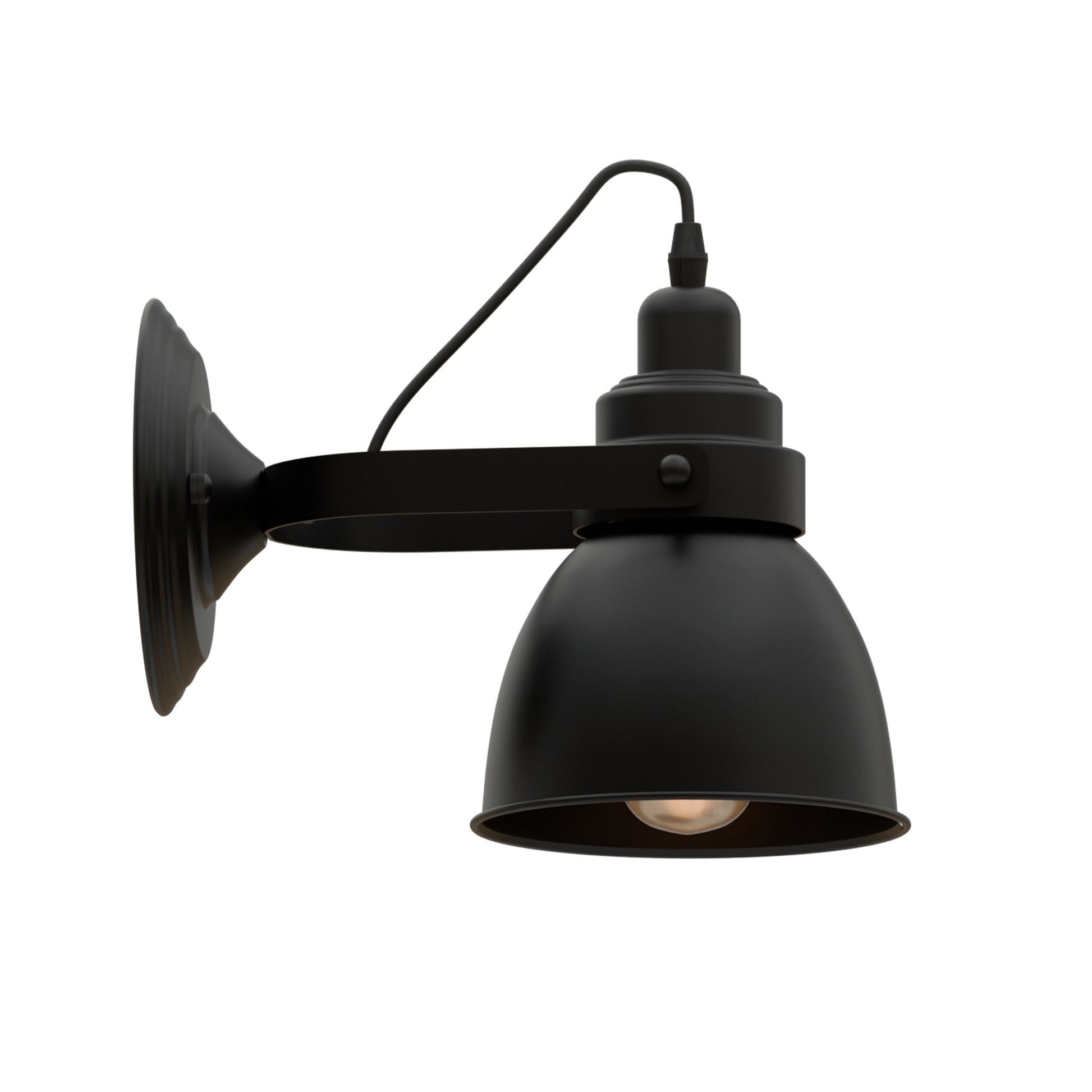 - De vaak afgewerkte gebogen arm van de wandlamp ondersteunt de kap van de wandplaat, wat zorgt voor stabiliteit en een nette installatie