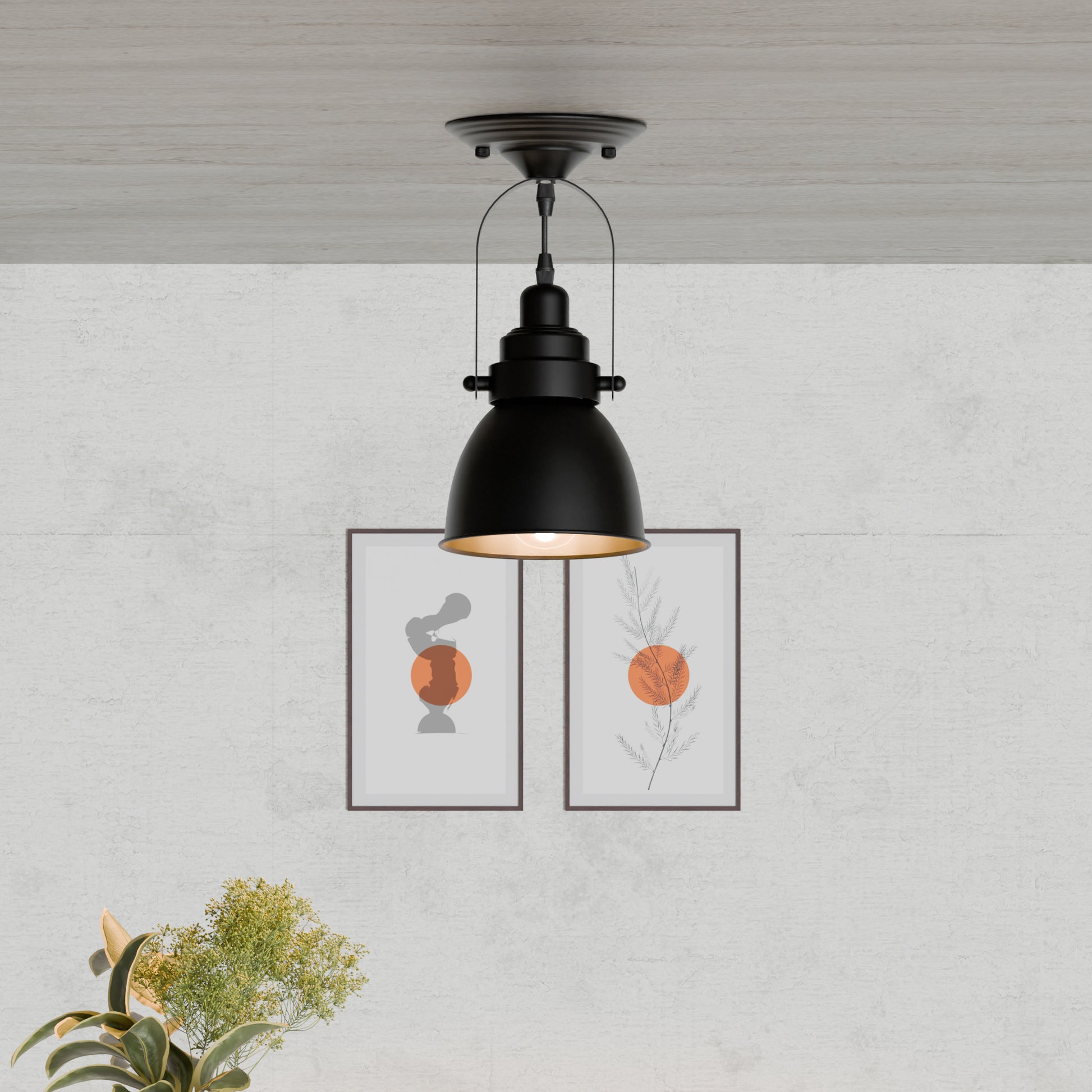 - De klokvormige kap naar beneden is ideaal voor gerichte verlichting in specifieke gebieden. De vorm is ontworpen met een curve die het licht om functionele redenen richt.