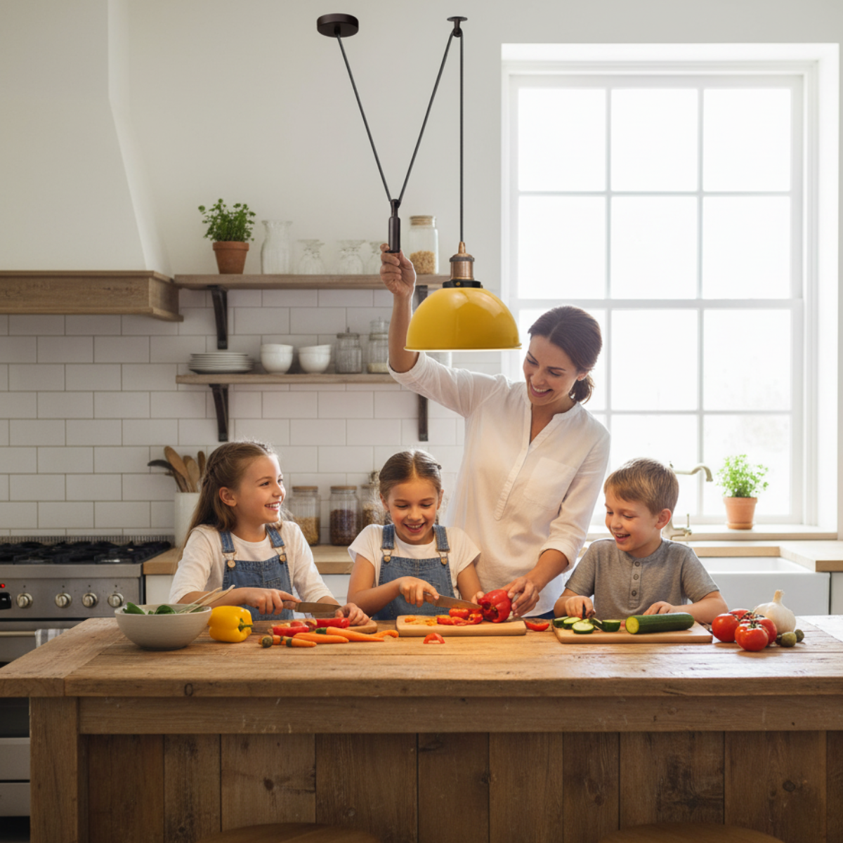 Transform your space with the perfect blend of form and function. This Industrial Rise and Fall Pendant Light brings a timeless vintage charm to any room, from your kitchen to your home office.