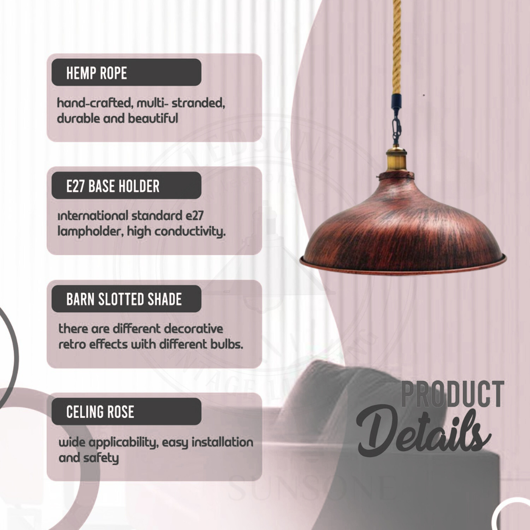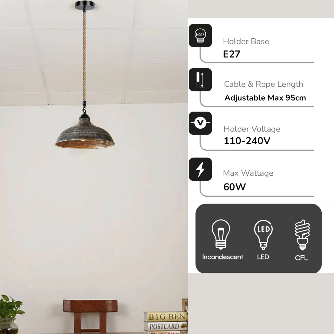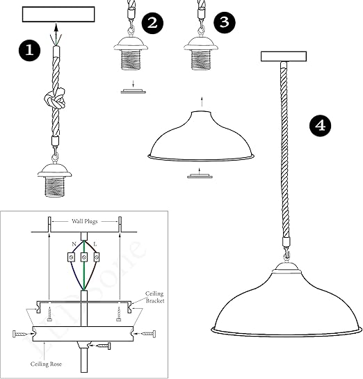 - Een complete set inclusief hanglamp, metalen kap, plafondkap en installatiemateriaal.