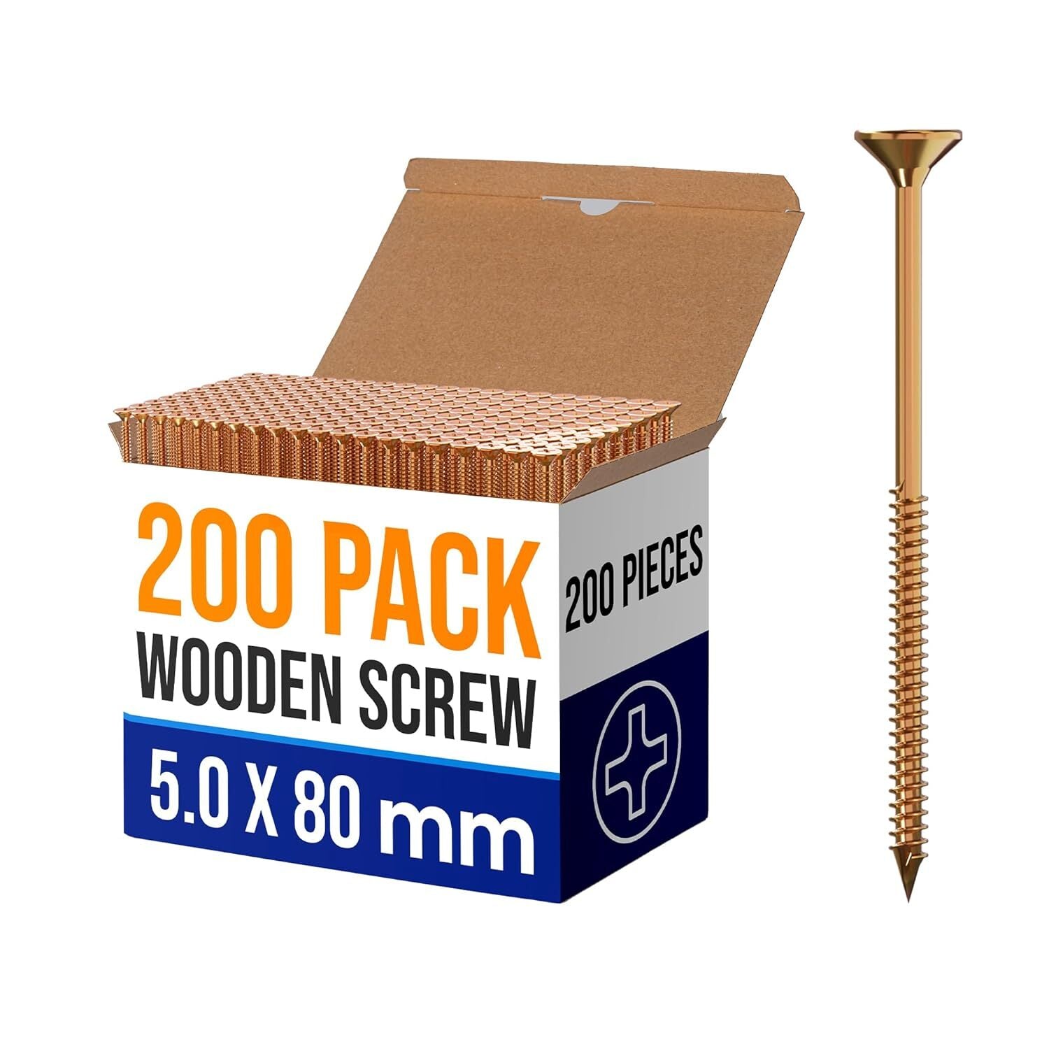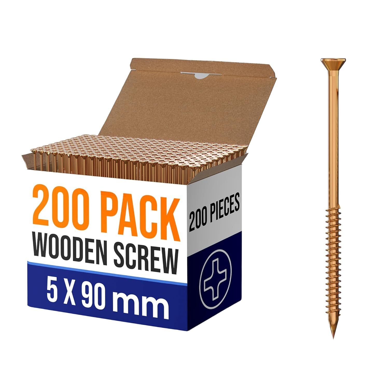 - Elke verpakking houtschroeven bevat 200 stuks. De platte, zelftappende schroefdraad is diep, eenvoudig te installeren en voorkomt wegglijden.