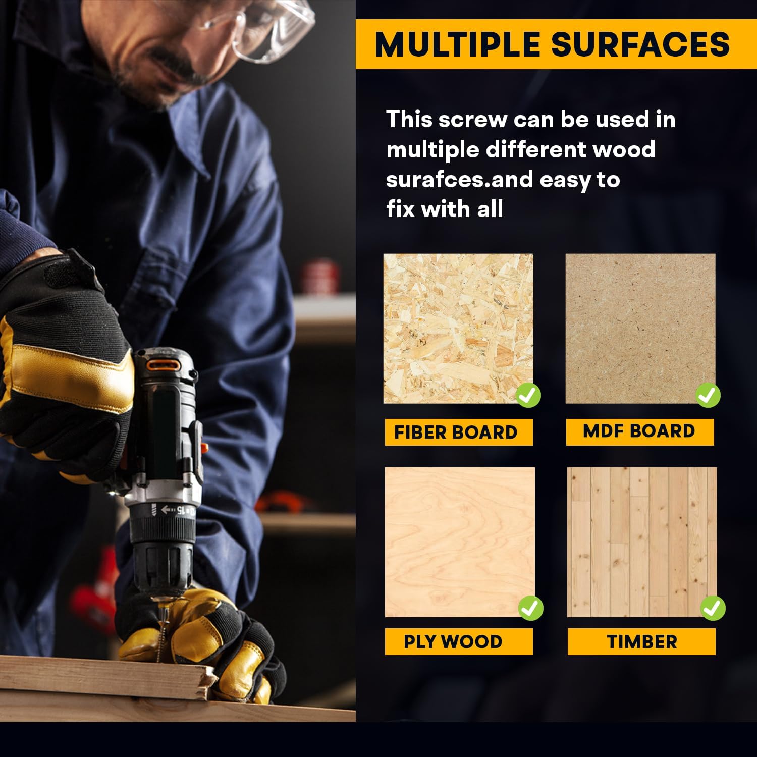 - De houtschroeven zijn uitgevoerd met zelftappende schroeven met gekartelde schroefdraad en puntige punten, waardoor ze gemakkelijker door te dringen zijn.