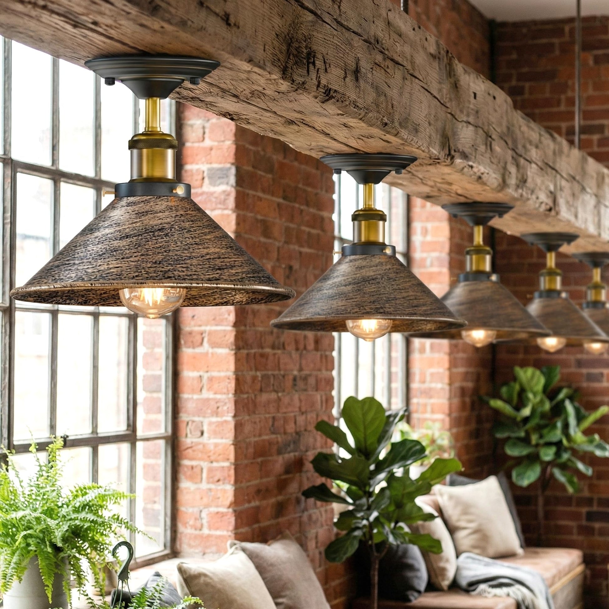 Semi-flush plafondlamp met antieke kegelvormige kap ~ 5176