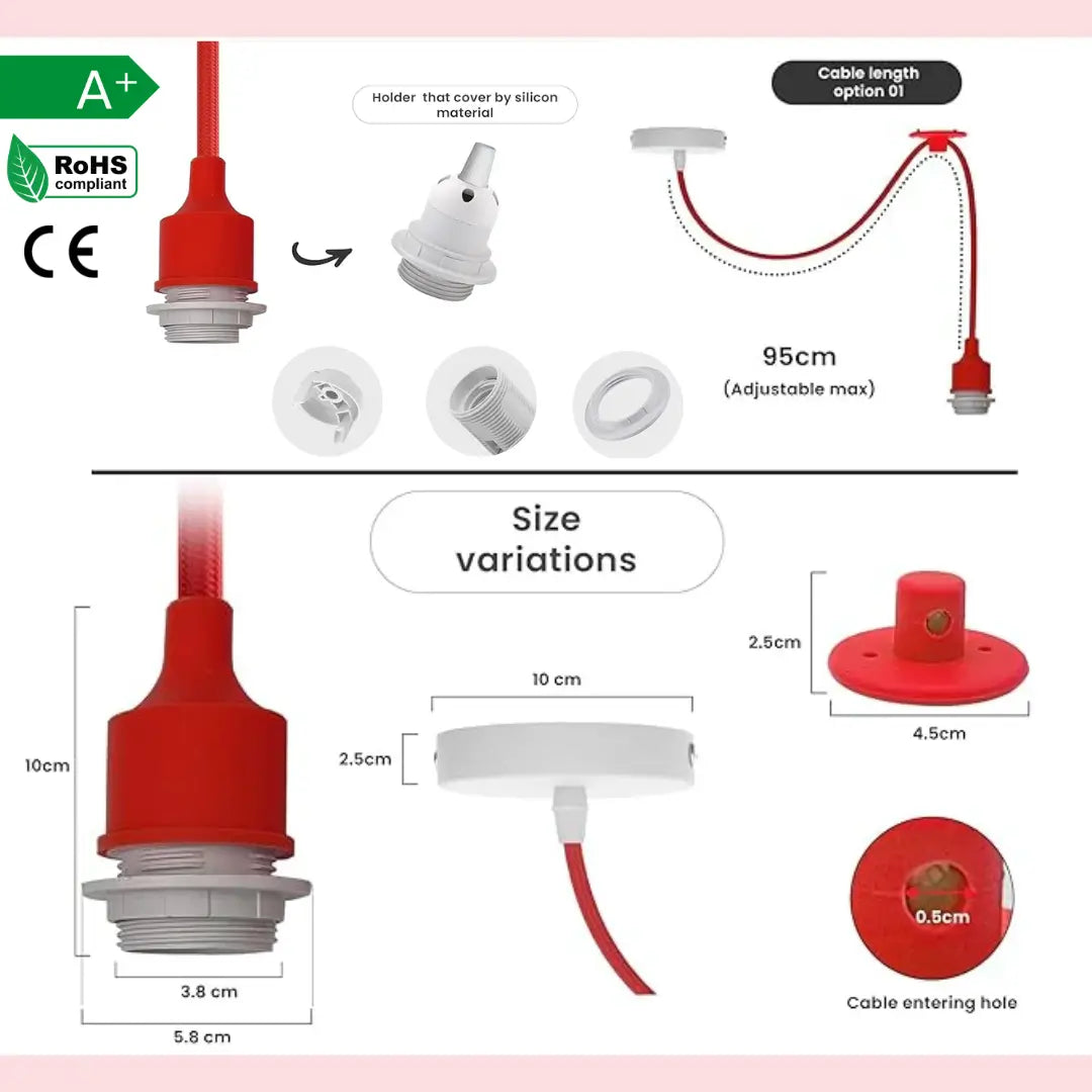 - De hanglamp heeft een verstelbare kabel van maximaal 95 cm, die u hoger of lager kunt hangen om aan uw verschillende behoeften te voldoen.