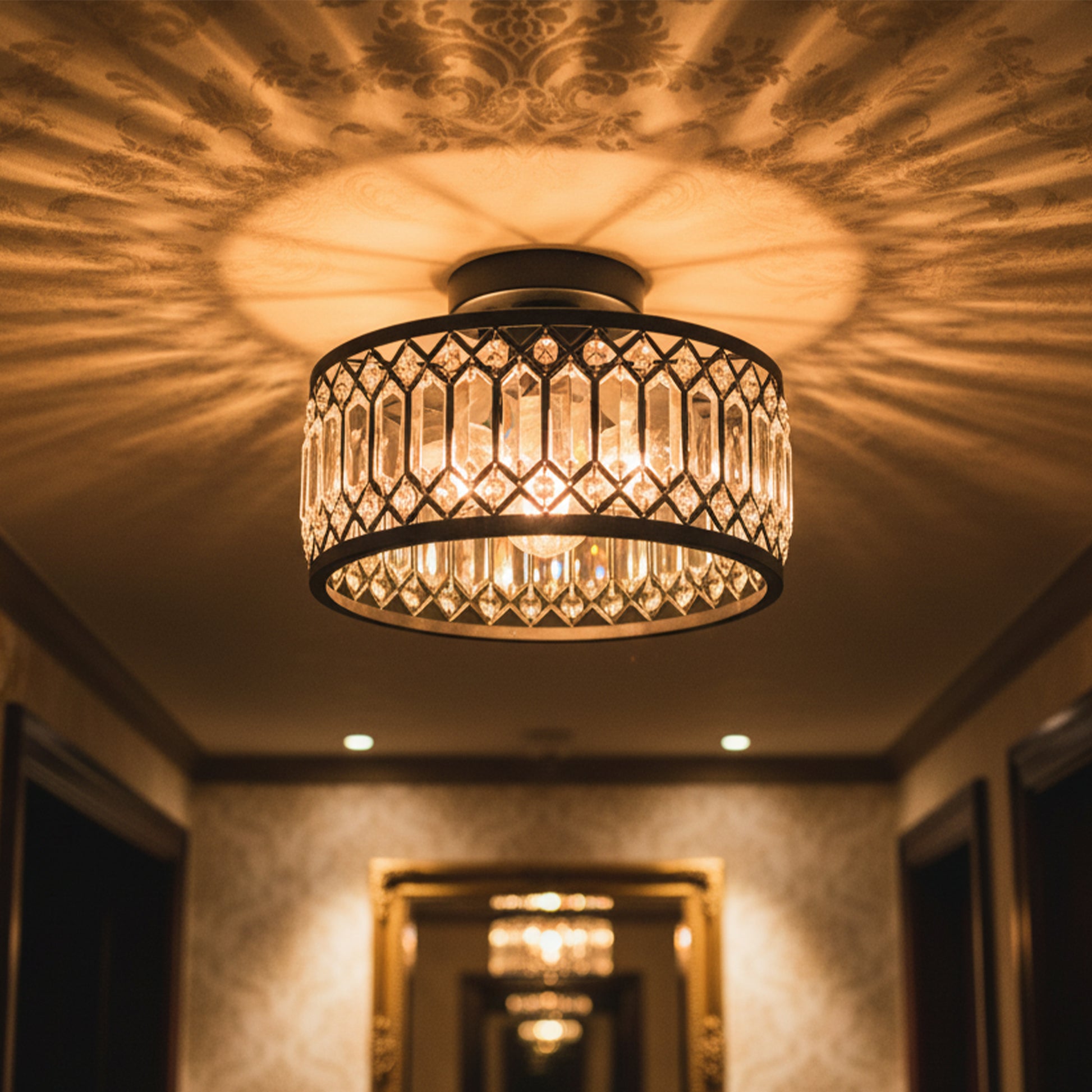 - This crystal ceiling light creates a warm, welcoming ambiance that feels both high-end and comfortable.