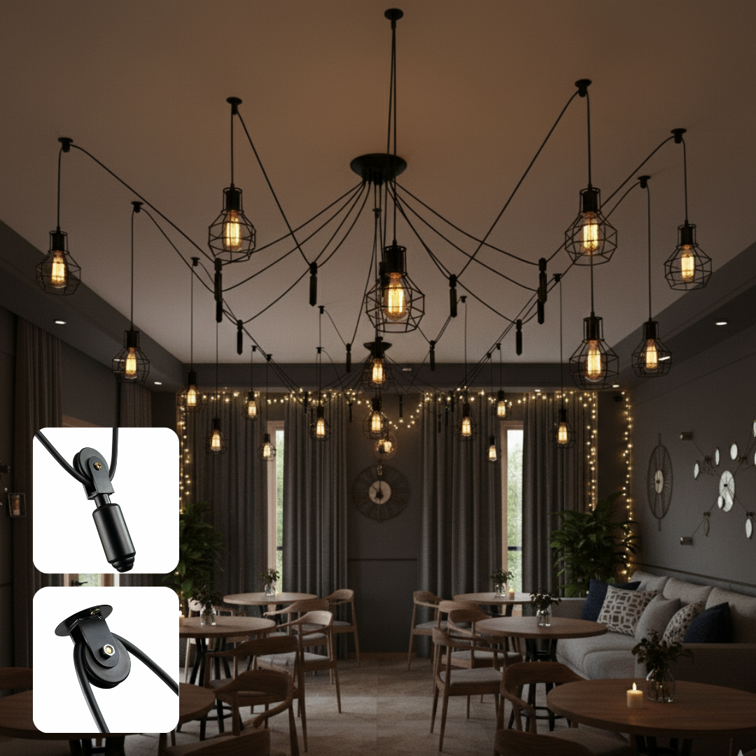 - Creative and fashionable Industrial Vintage 8 way Pendant Hanging Light Fixture with metal wire cage, as well as perfect interior decoration.
