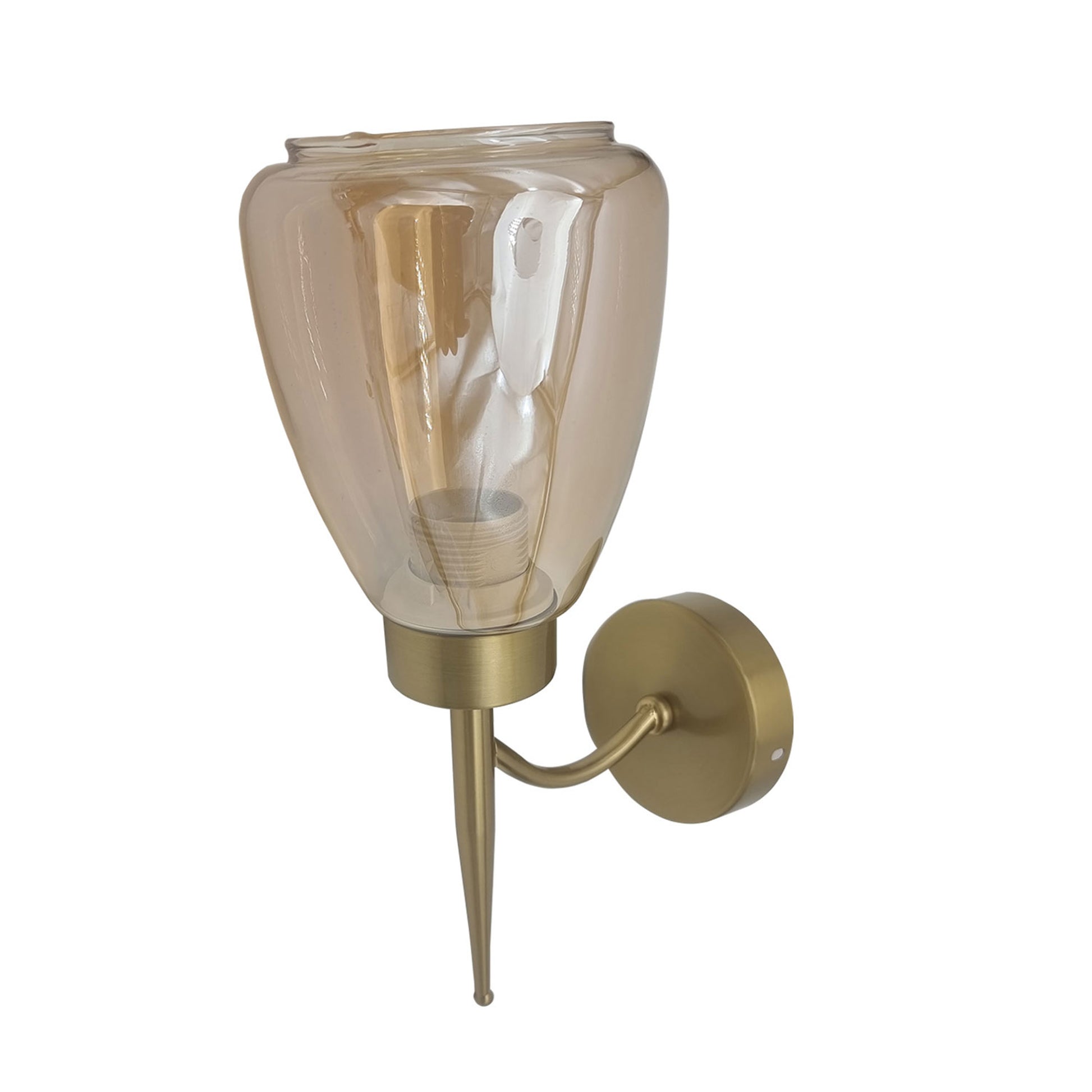 - De wandlamp van amberkleurig glas is de perfecte keuze om licht en stijl toe te voegen aan elke ruimte in je huis. Het decoratieve element van koperplaat is het meest aantrekkelijke onderdeel van deze prachtige wandlamp.