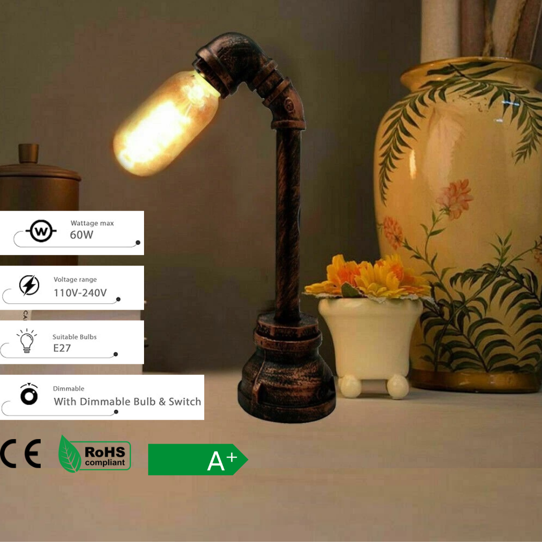 - Vintage Industriële Loft Rustieke Vintage Waterpijp Steampunk Bureau Tafellamp Armatuur.