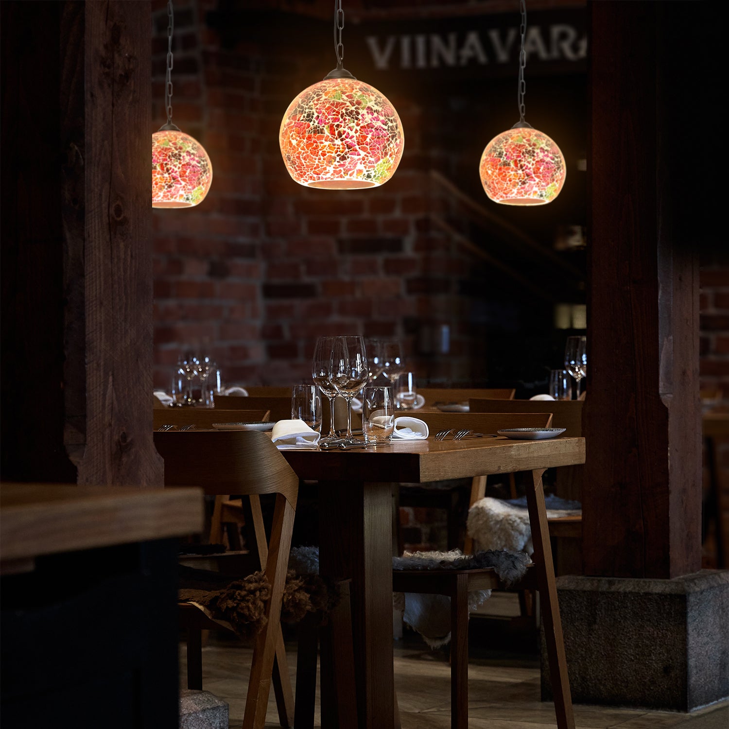 - Deze glazen hanglamp wordt gebruikt voor functionele verlichting boven kookeilanden of als sfeerverlichting in lange, smalle ruimtes zoals gangen.