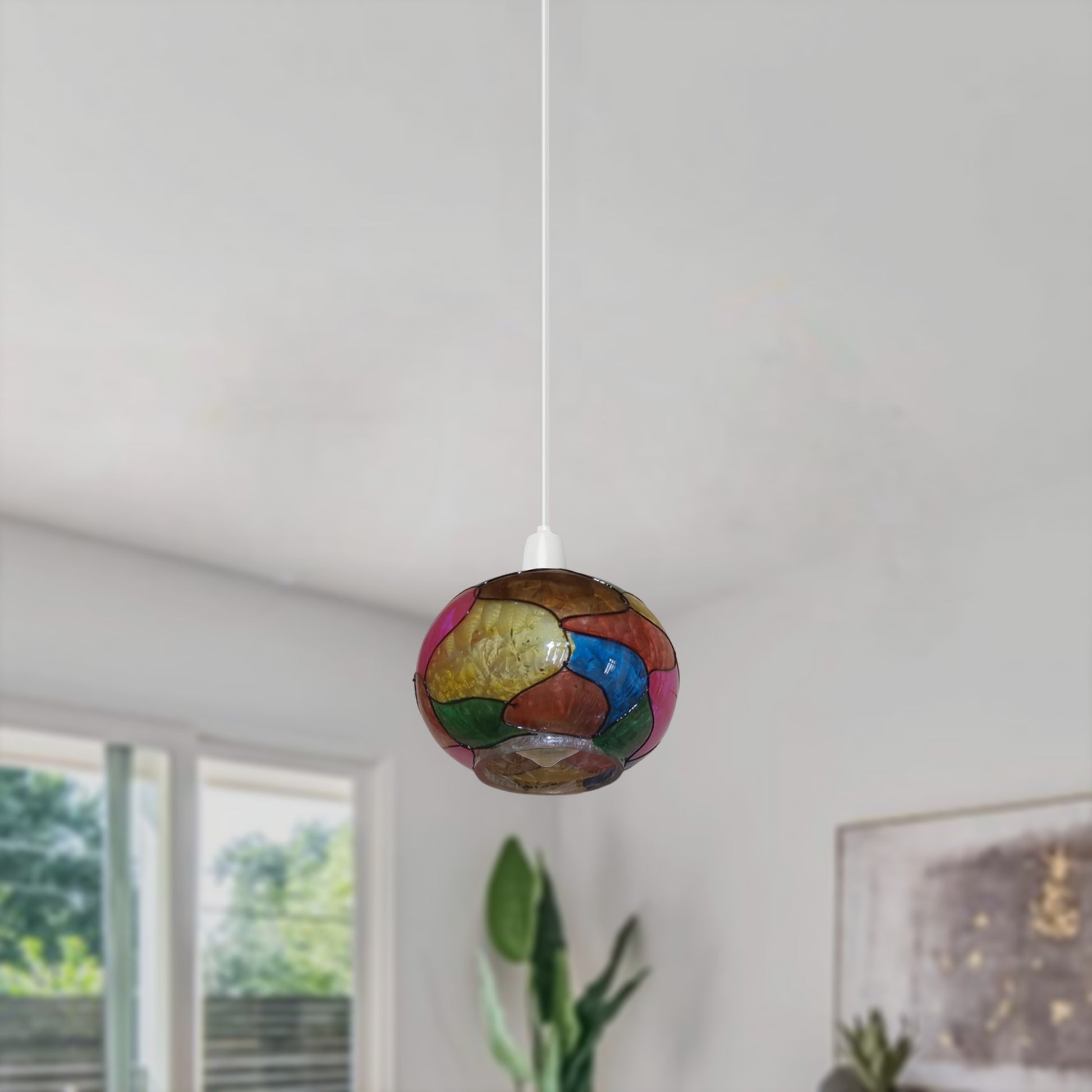 - De lampenkap is geïnspireerd op de iconische Tiffany-stijl, bekend om zijn ingewikkelde glas-in-loodpatronen die het licht op een kleurrijke manier verspreiden.