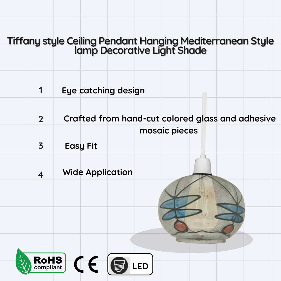 Tiffany-stijl plafondlamp, hangende mediterrane stijl, decoratieve lampenkap ~4541