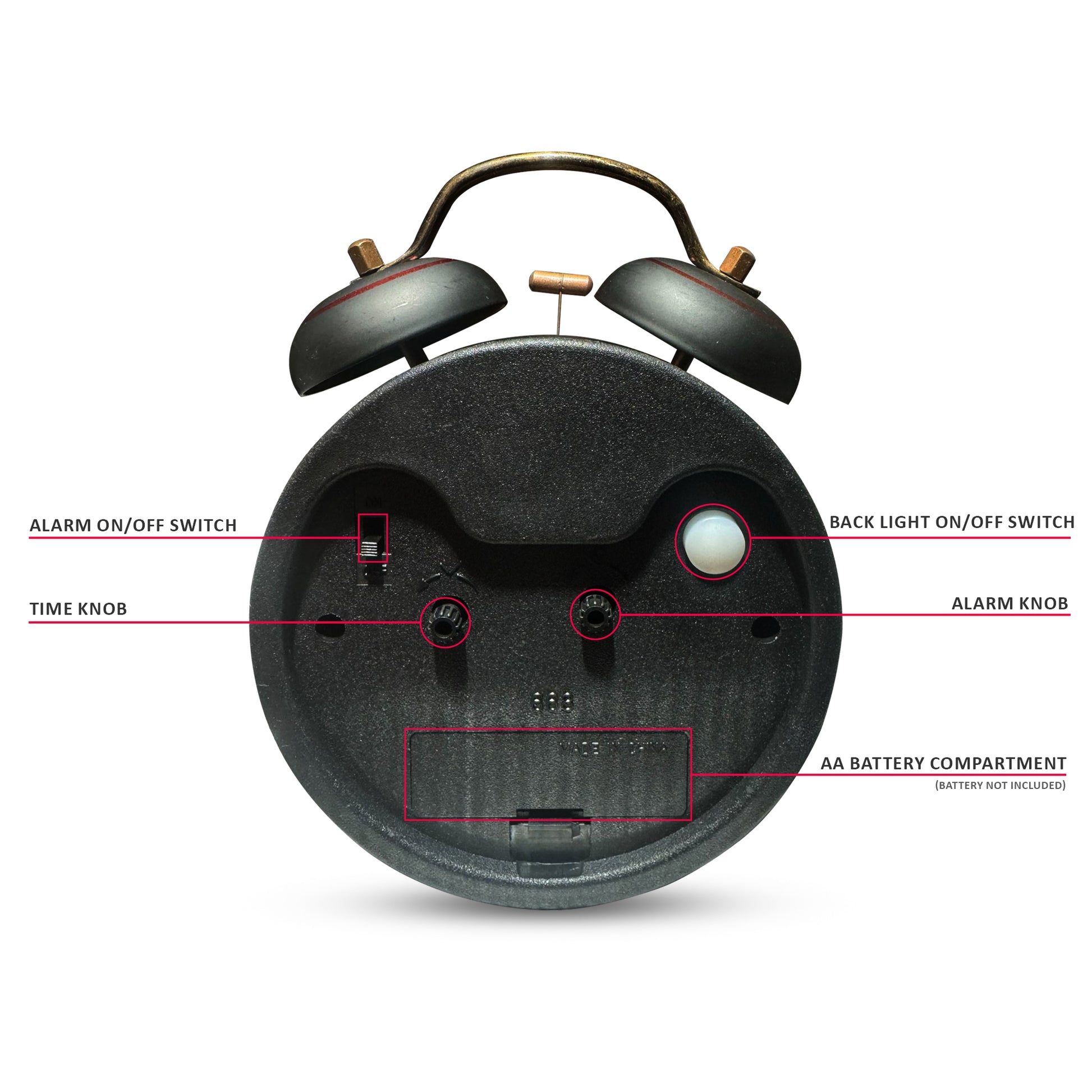 Twin Bell wekker retro batterijgevoede nachtkastjeklok-5553