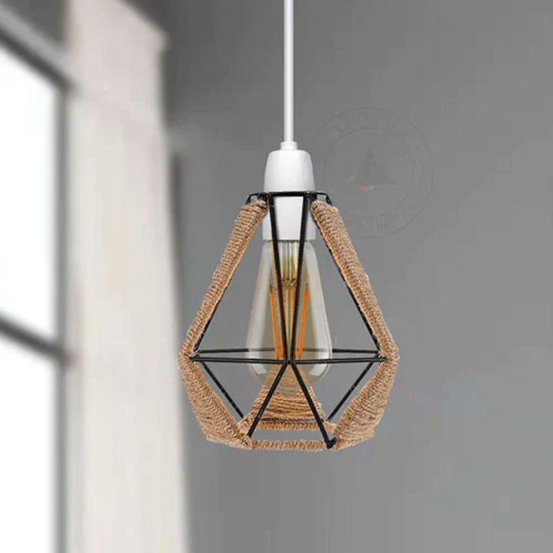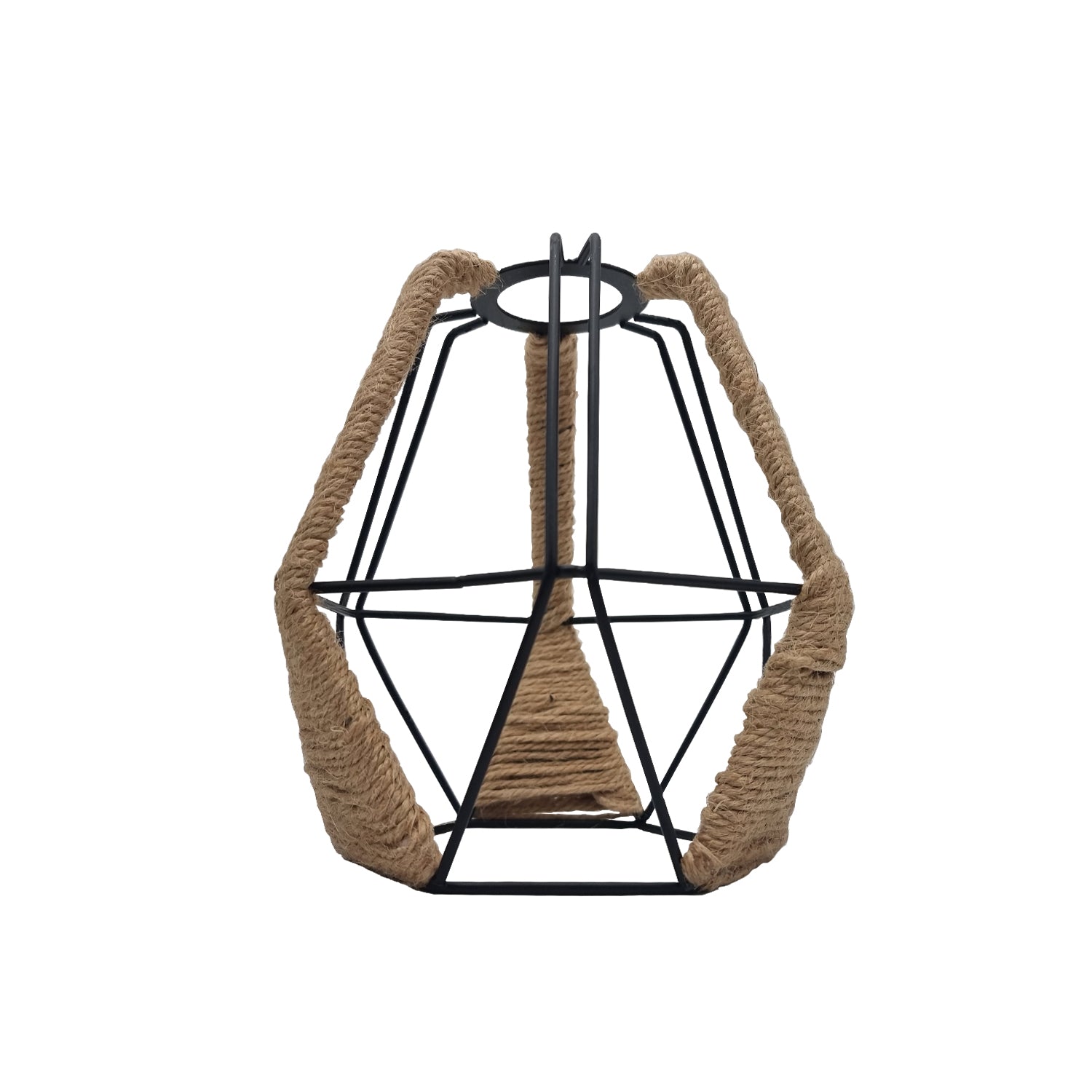 - Voeg een uniek tintje toe aan uw huisdecoratie met deze metalen kooilampenkap omwikkeld met henneptouw
