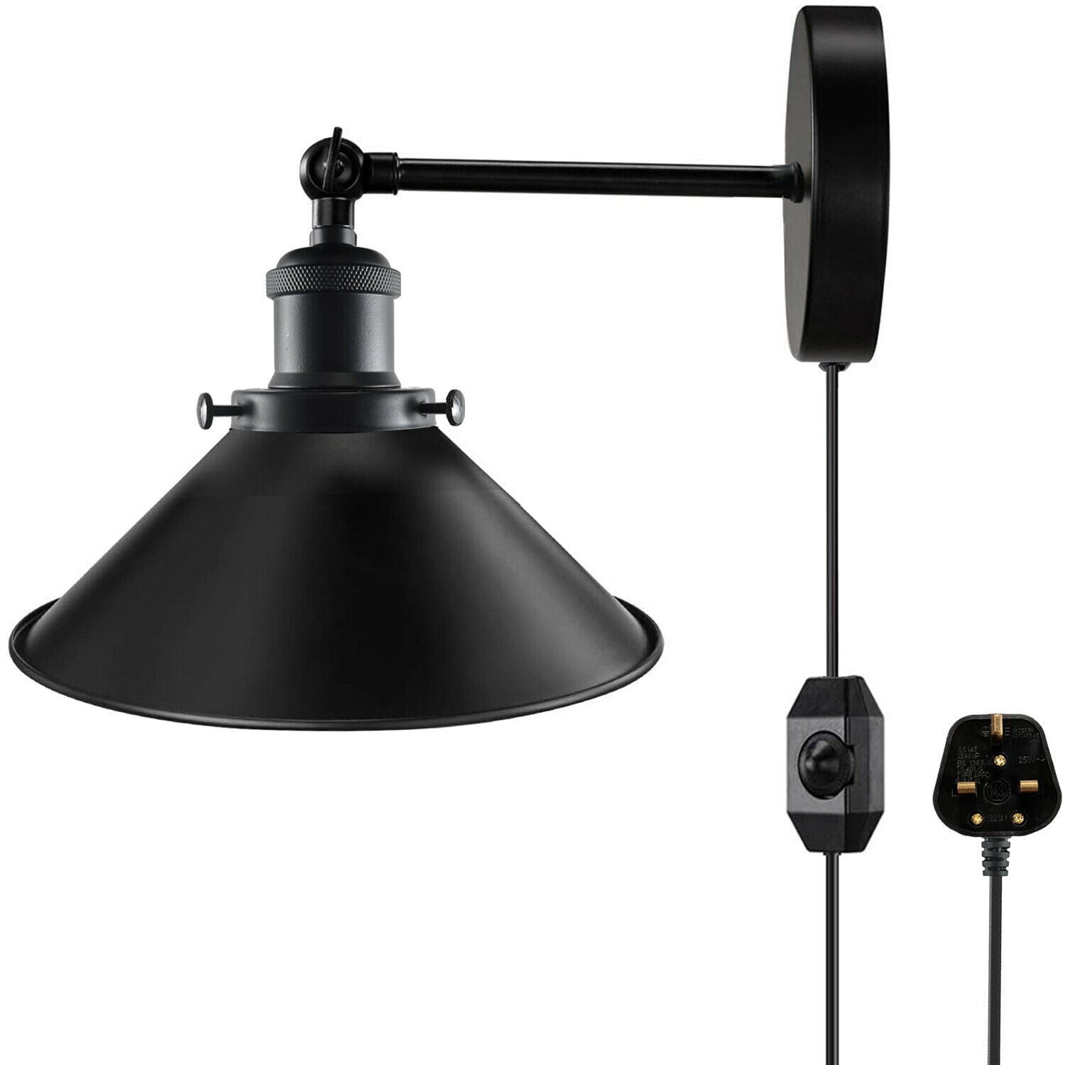 - 1 x Plug-in wandlampenset (lampenkap, E27-fitting met lamparm, plafondrozet met Britse stekker en montageaccessoires (lamp is optioneel)