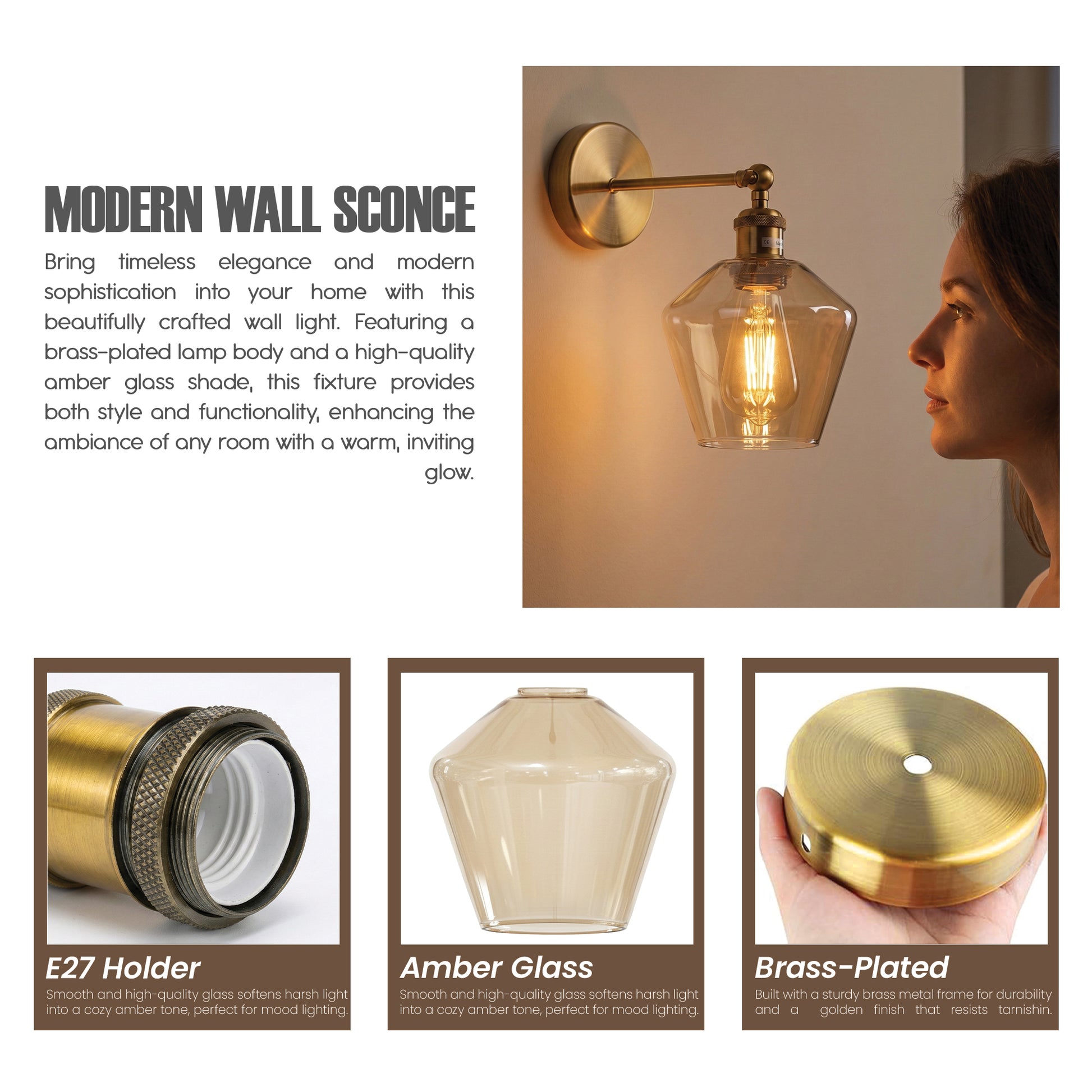 - Easy Installation: Includes wall mount base, amber glass shade & LED bulb for hassle-free setup.
