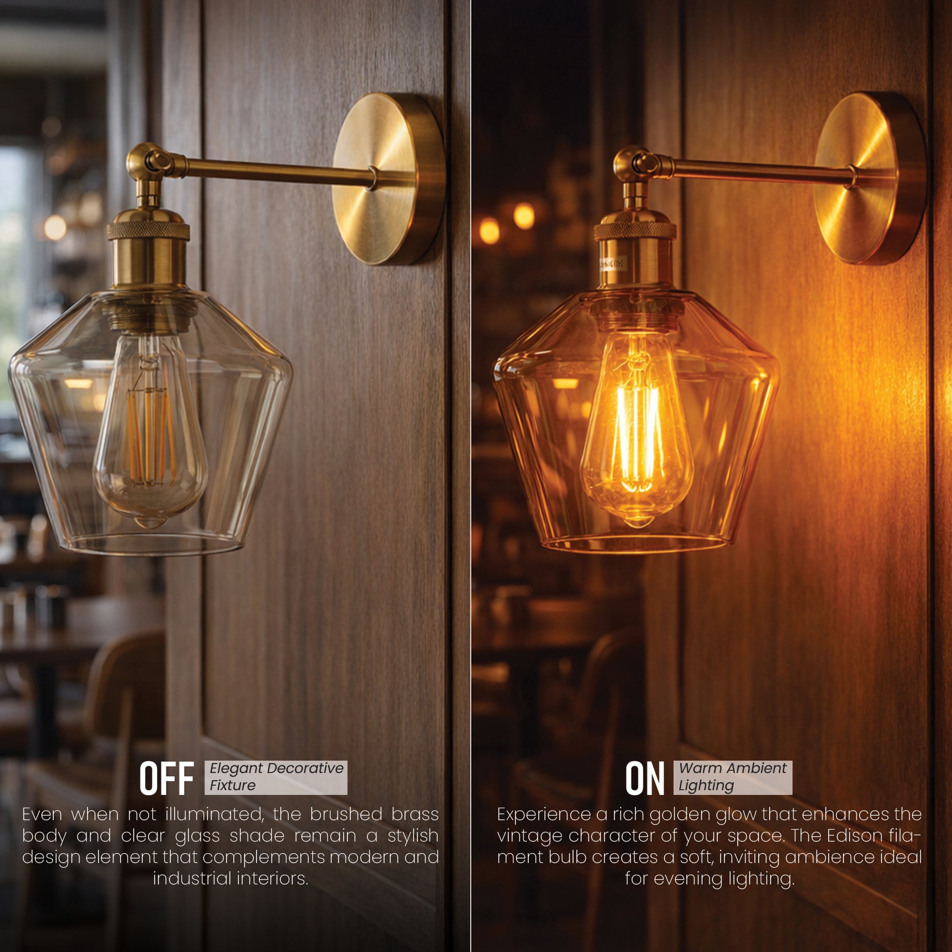 - Premium Design: Brass wall sconce with amber glass shade adds vintage charm & modern style to any room.