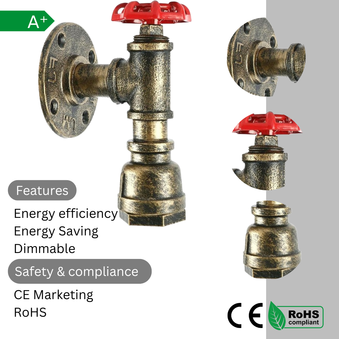 Vintage industriële rustieke steampunk geborstelde metalen waterpijp wandlampen