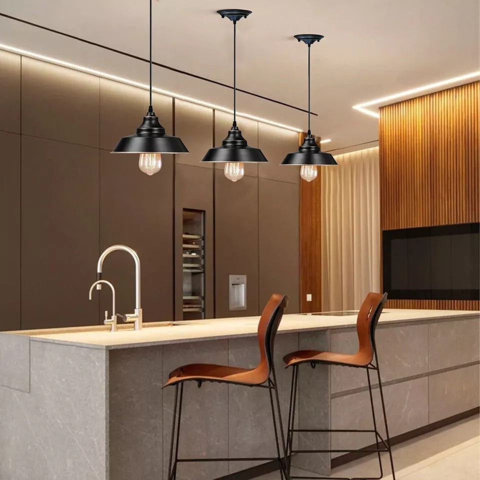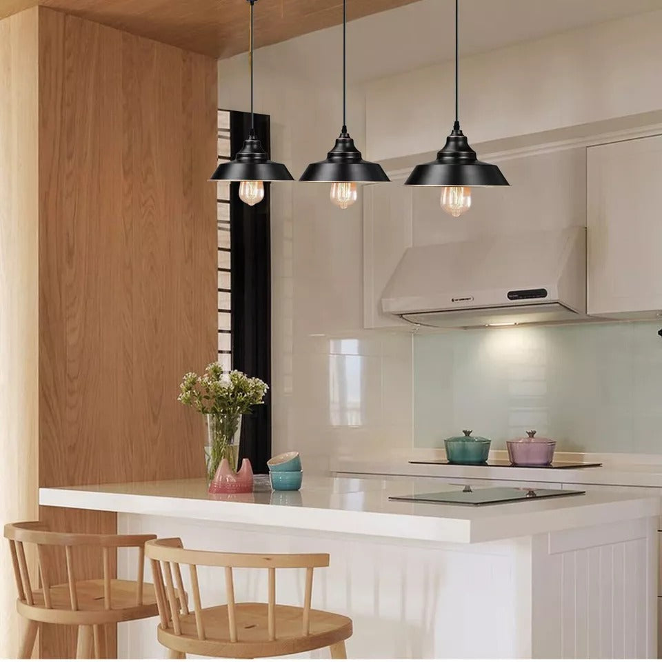 - Creatieve en modieuze vintage hanglamp met één kop en metalen kap. Ziet er eenvoudig maar aantrekkelijk en ruimtebesparend uit.