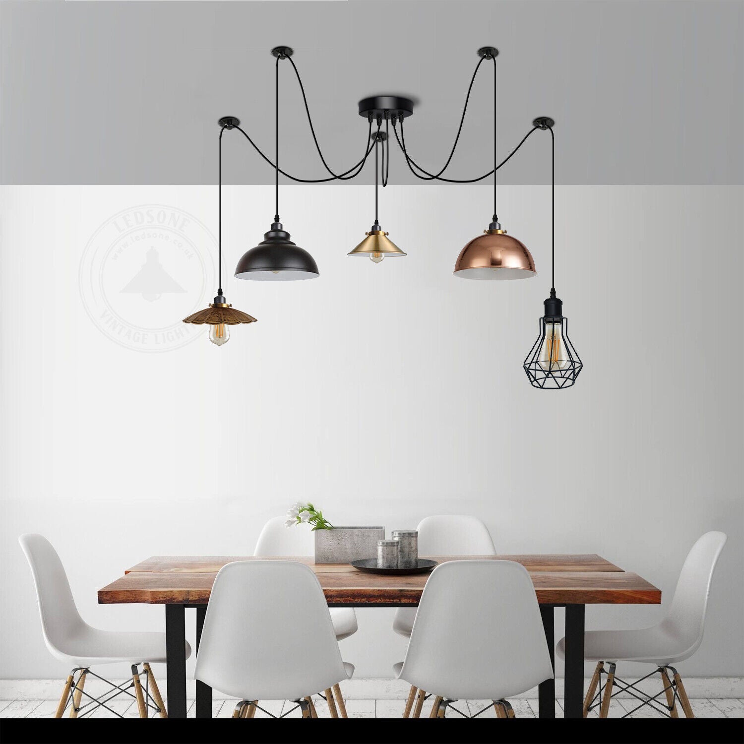 Vintage plafond hanglamp lampenkap industriële kroonluchter spin lamp~4463