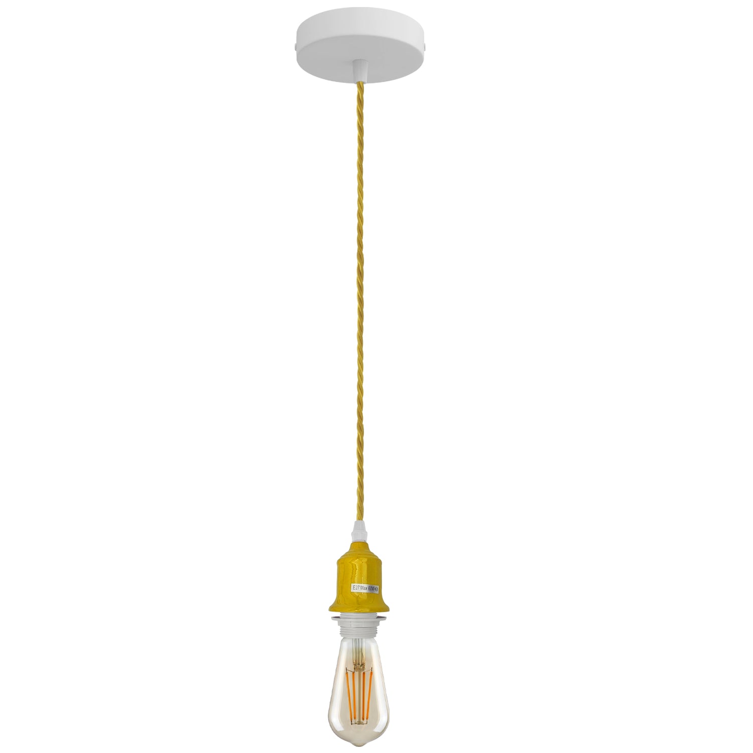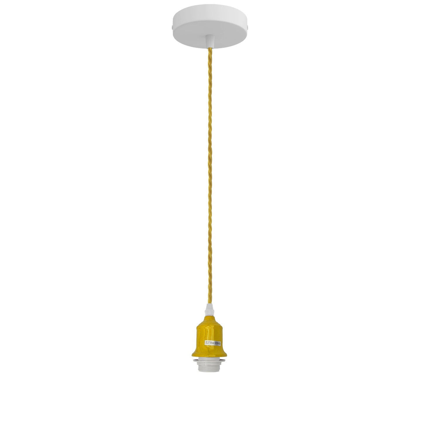 Vintage plafondrozet hanglamp van gevlochten stof met flexibele fitting, lichtset ~4467