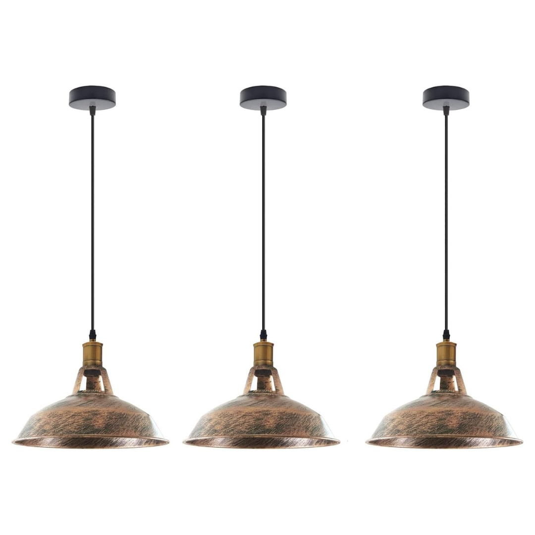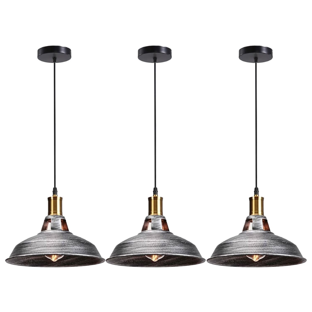 Elevate your interior design with this 3-Pack of Industrial Vintage Pendant Lights. Perfectly blending retro charm with modern durability, these hanging fixtures are designed to make a statement in any room. Whether you are upgrading your kitchen island lighting, adding character to a dining room, or setting the mood in a cafe or bar and Pool Table, these lights deliver the perfect balance of style and function.