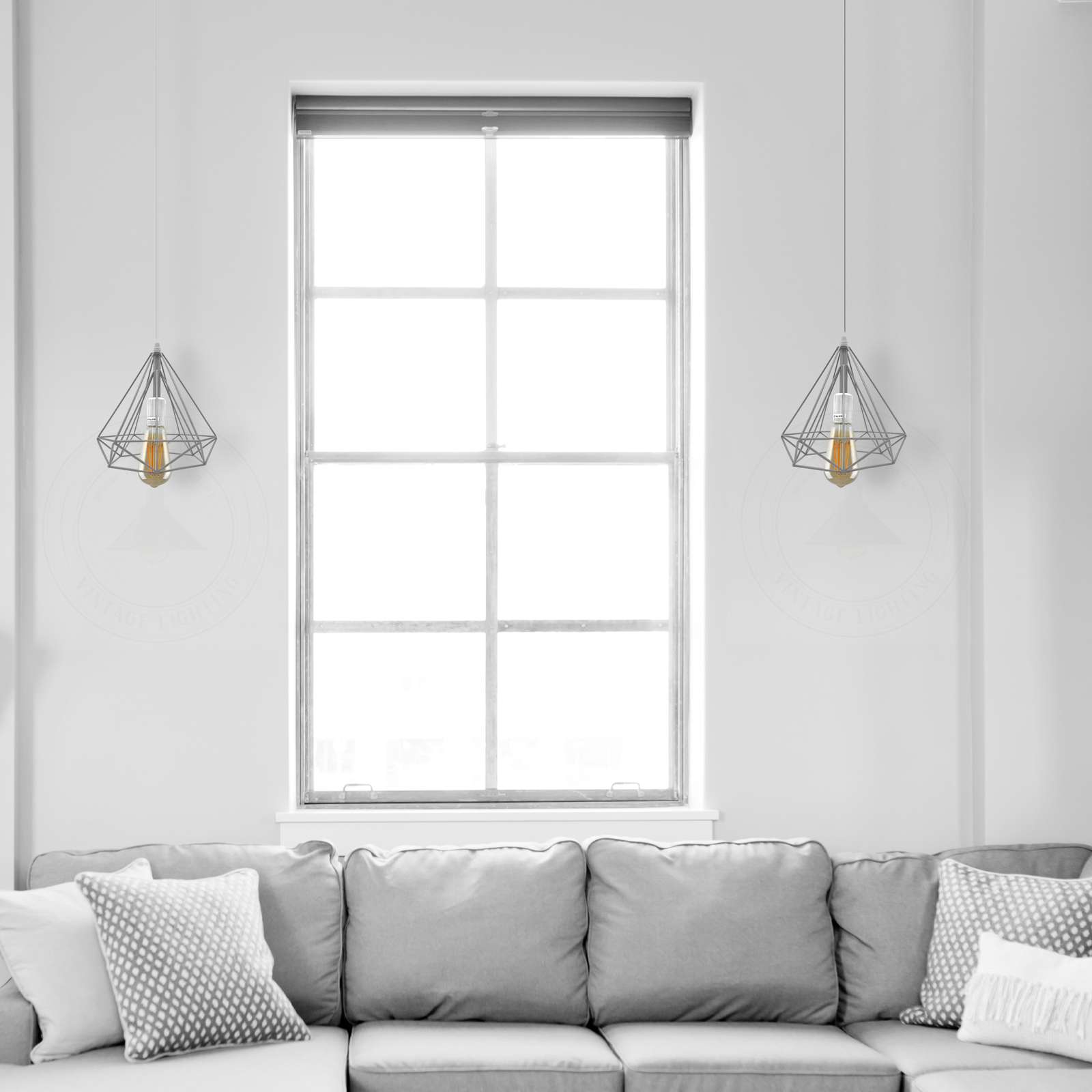 Vintage industriële plafondlamp met diamanten kooi ~ 5664