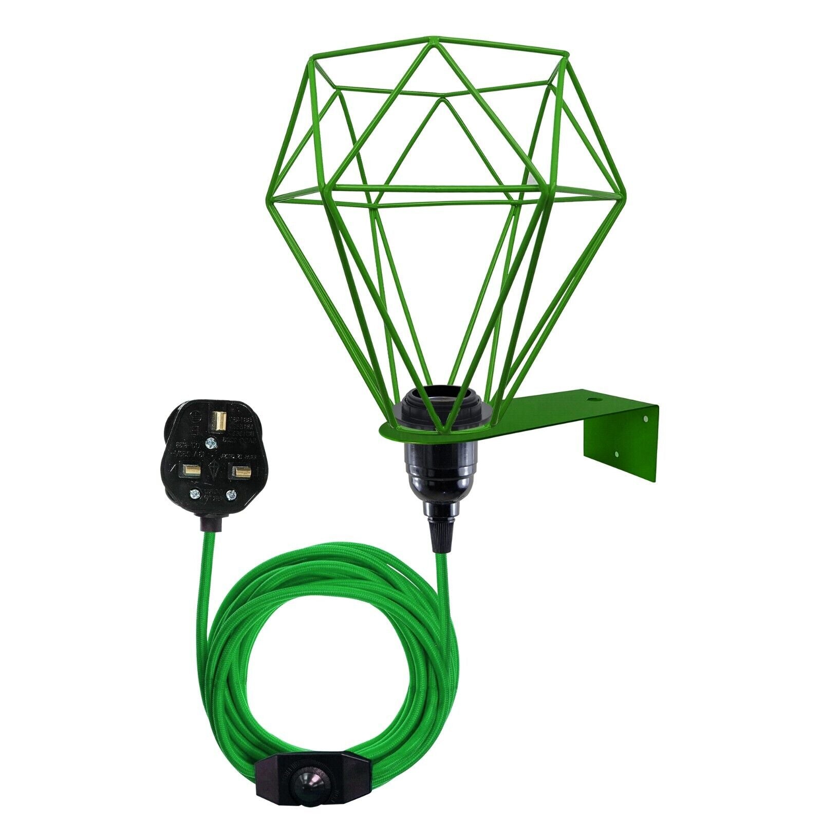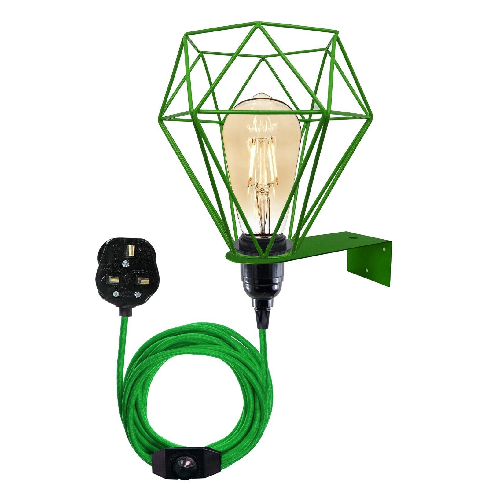 Vintage industriële groene wandlampen in retrostijl, metalen wandlamp met stekker