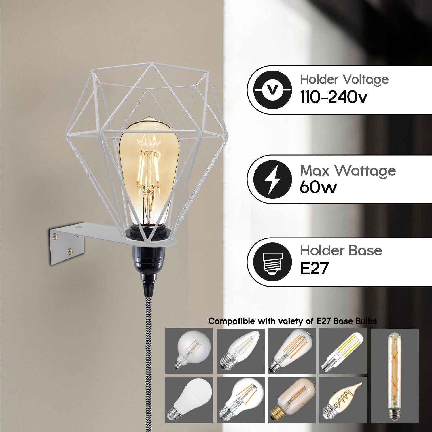 - De wandlamp is eenvoudig te installeren, omdat deze een stekkerfunctie heeft. U kunt de lamp gewoon in een standaard stopcontact steken en u kunt aan de slag. U hoeft geen bedrading aan te leggen of een elektricien in te huren.