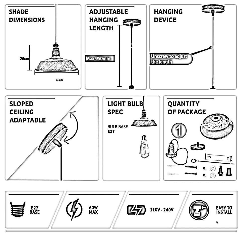Vintage industriële metalen plafondlampkap, moderne hangende retrolampen~5838