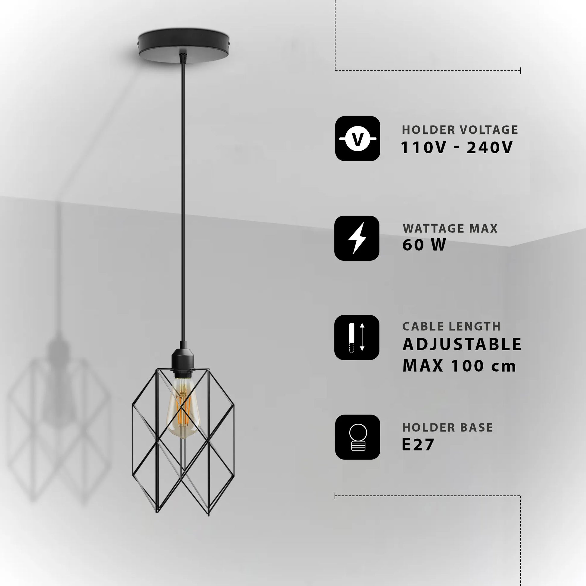- De hanglamp is voorzien van een E27-fitting met maximaal 60 Watt en een voltage van 110-240 volt. Zo kiest u de juiste lamp voor de door u gewenste sfeer.