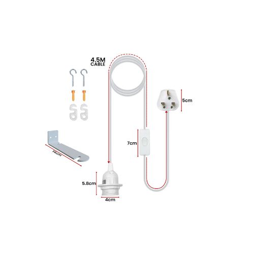 - 1 x Plug-in wandlamp met montageaccessoires (muurbeugel is optioneel)